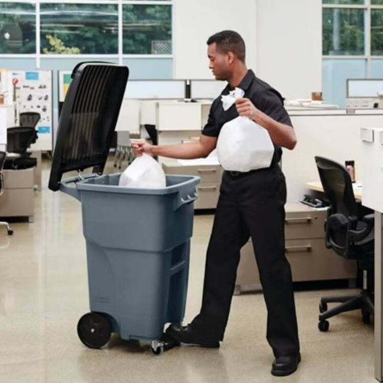 Rubbermaid Business Supplies Outdoor Pushable Pedal Trash Can with Lid and Wheels 120L 1971944 Gray Outdoor Garbage Recycling Garbage Classification Property Outdoor Trash Can Q