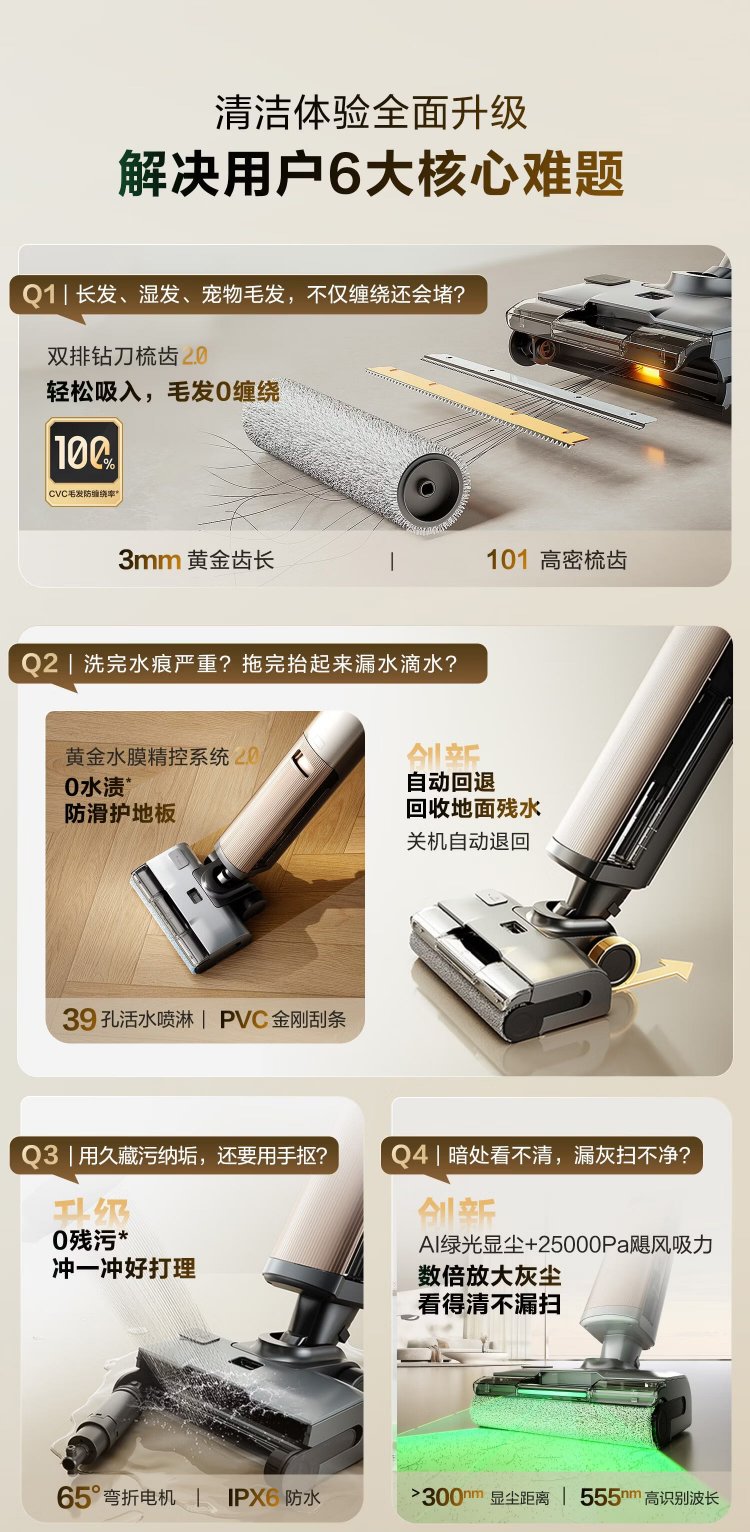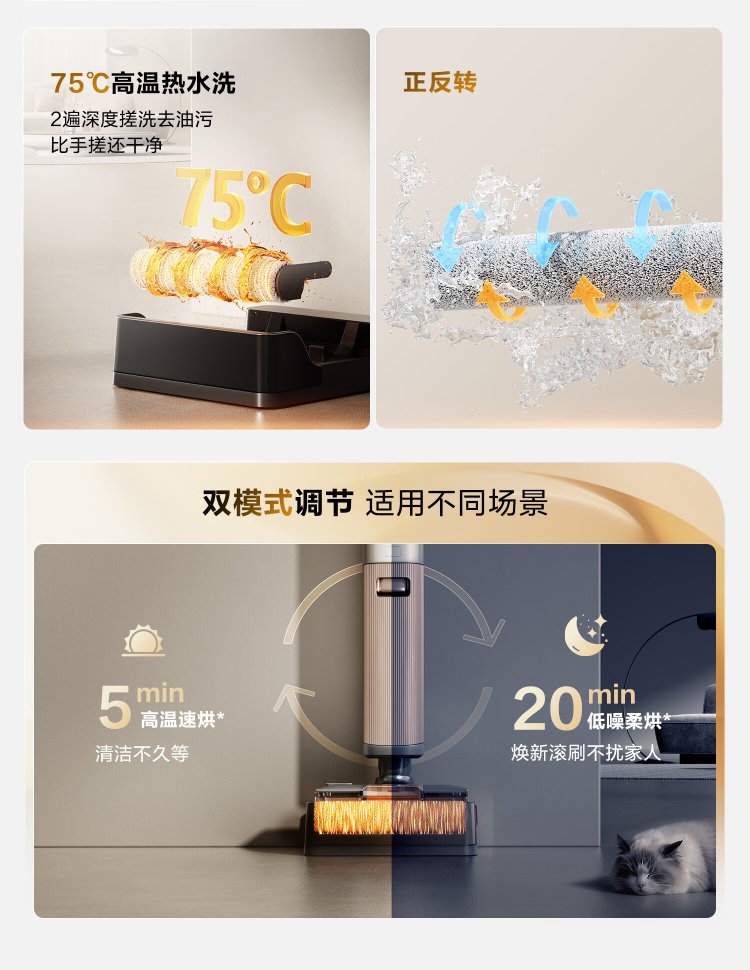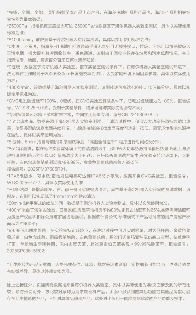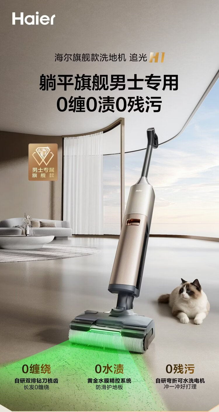 Haier Mailang Series Floor Scrubber Chasing Light H1 Clean Master All-in-one Washing, Mopping and Suction Automatic Cleaning and Mopping Robot Washable Floor Brush 180 Flat Laying Anti-Tangle