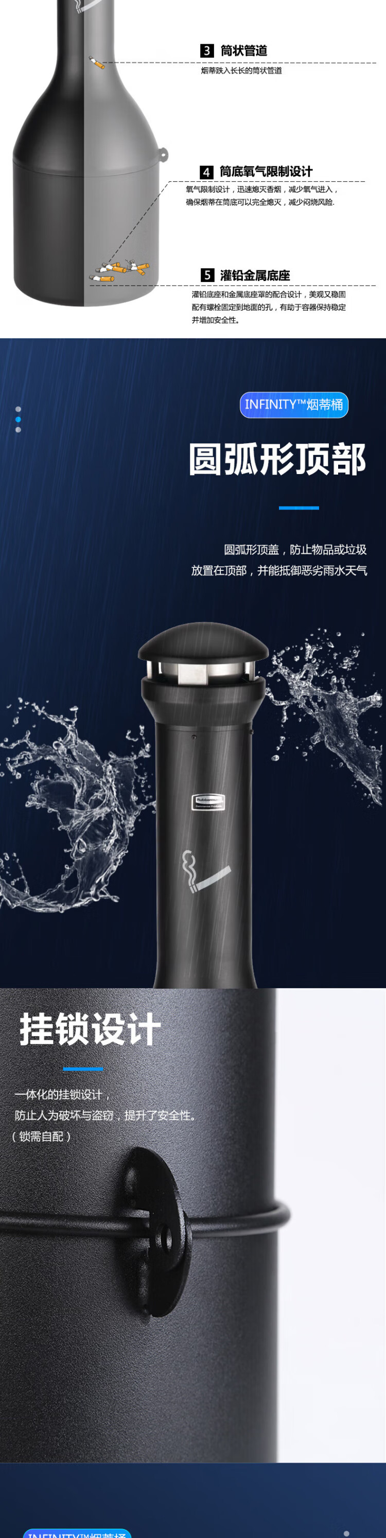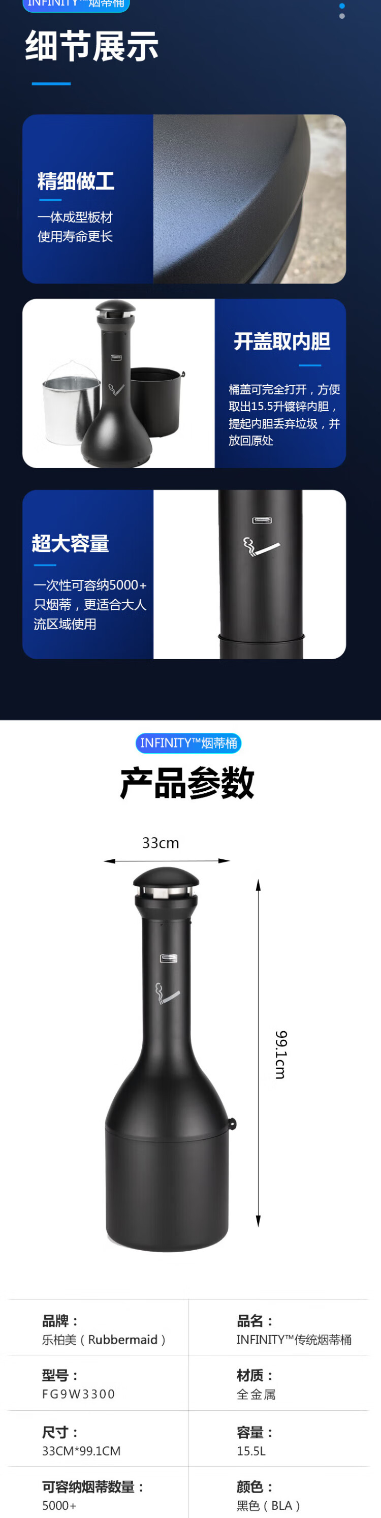 Rubbermaid Business Supplies Infinity Traditional Cigarette Butt Barrel Large Capacity Cigarette Butt Collection Cigarette Butt Barrel Trash Can Black FG9W3300BLA Lobby Cigarette Butt Collection Barrel Q