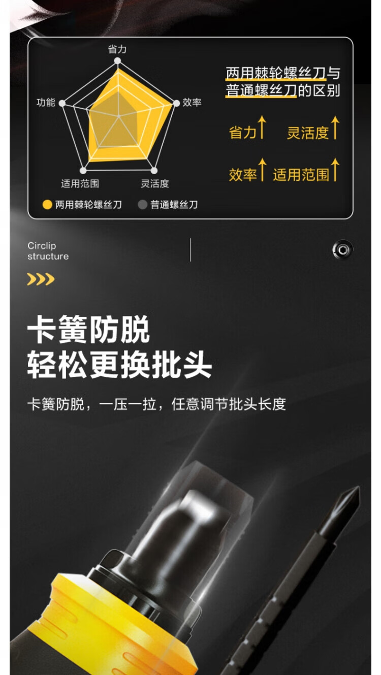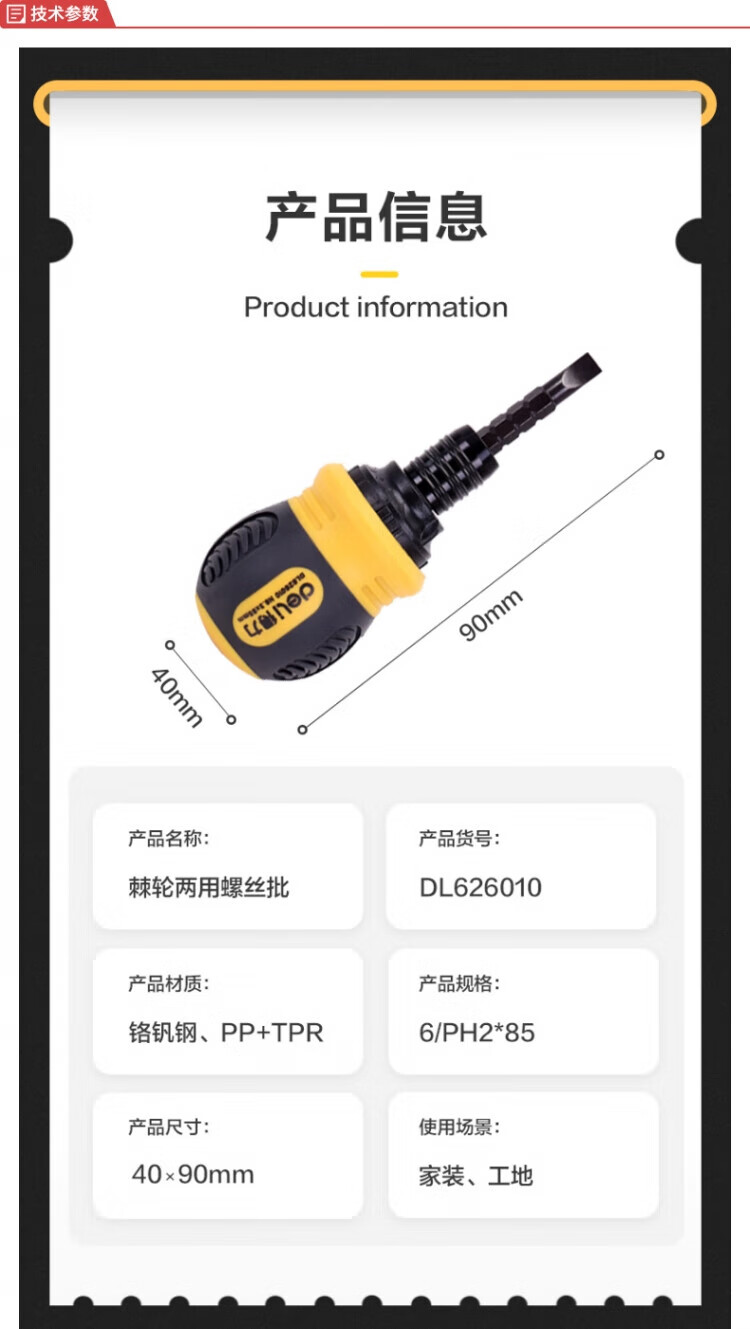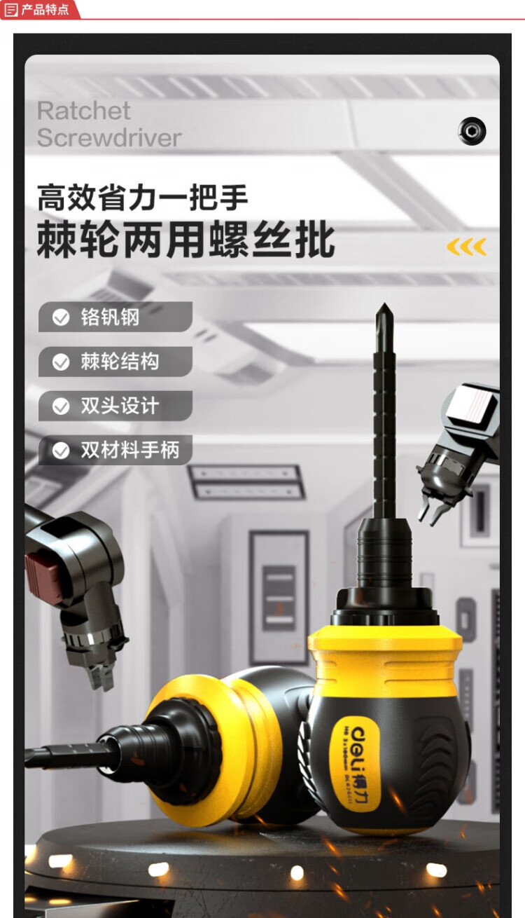 Deli ratchet dual-purpose screwdriver cross-shaped three-way retractable adjustable multi-function screw set DL626010