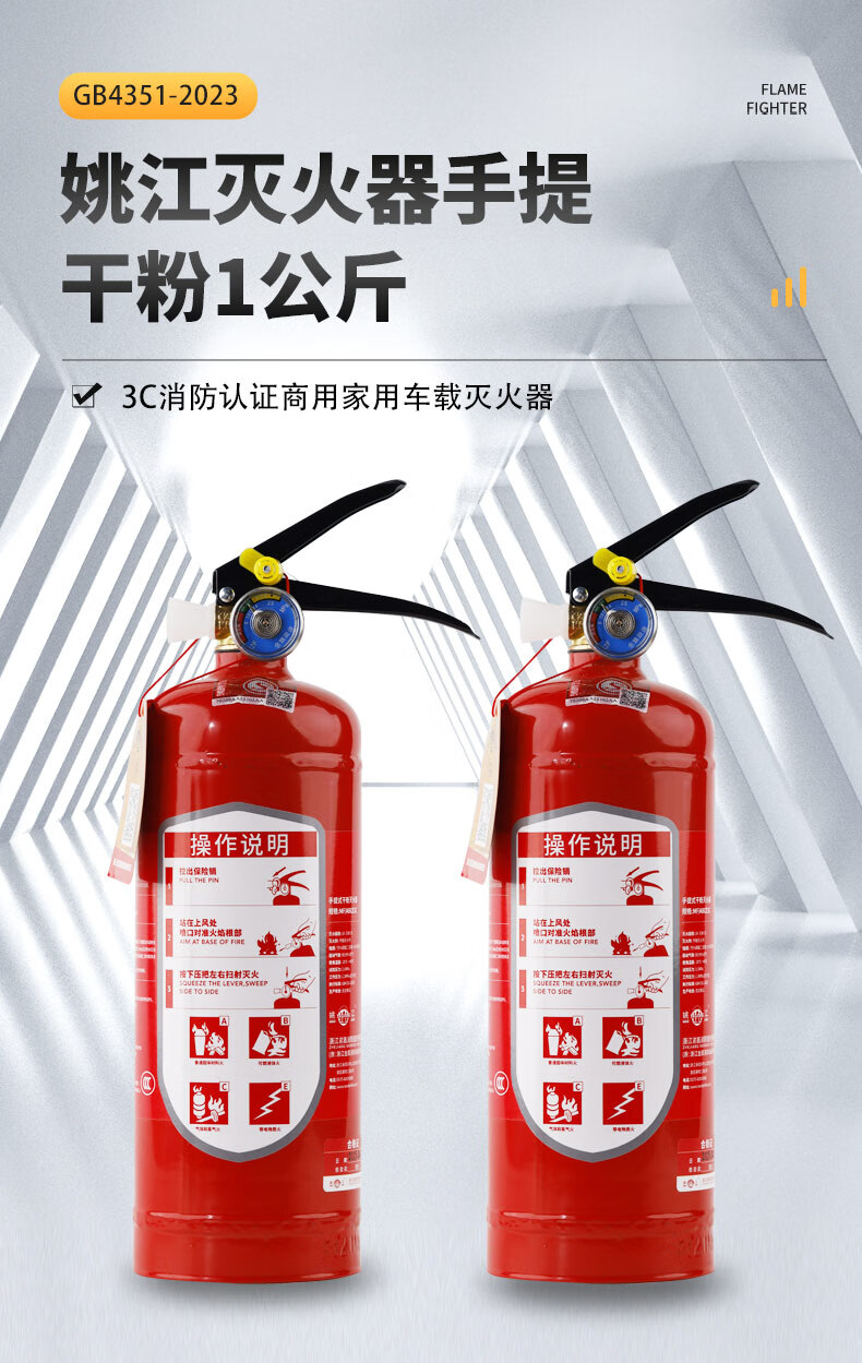 Yaojiang 25 new national standard dry powder fire extinguisher portable household and commercial 1kg latest national standard MF/ABCE1C