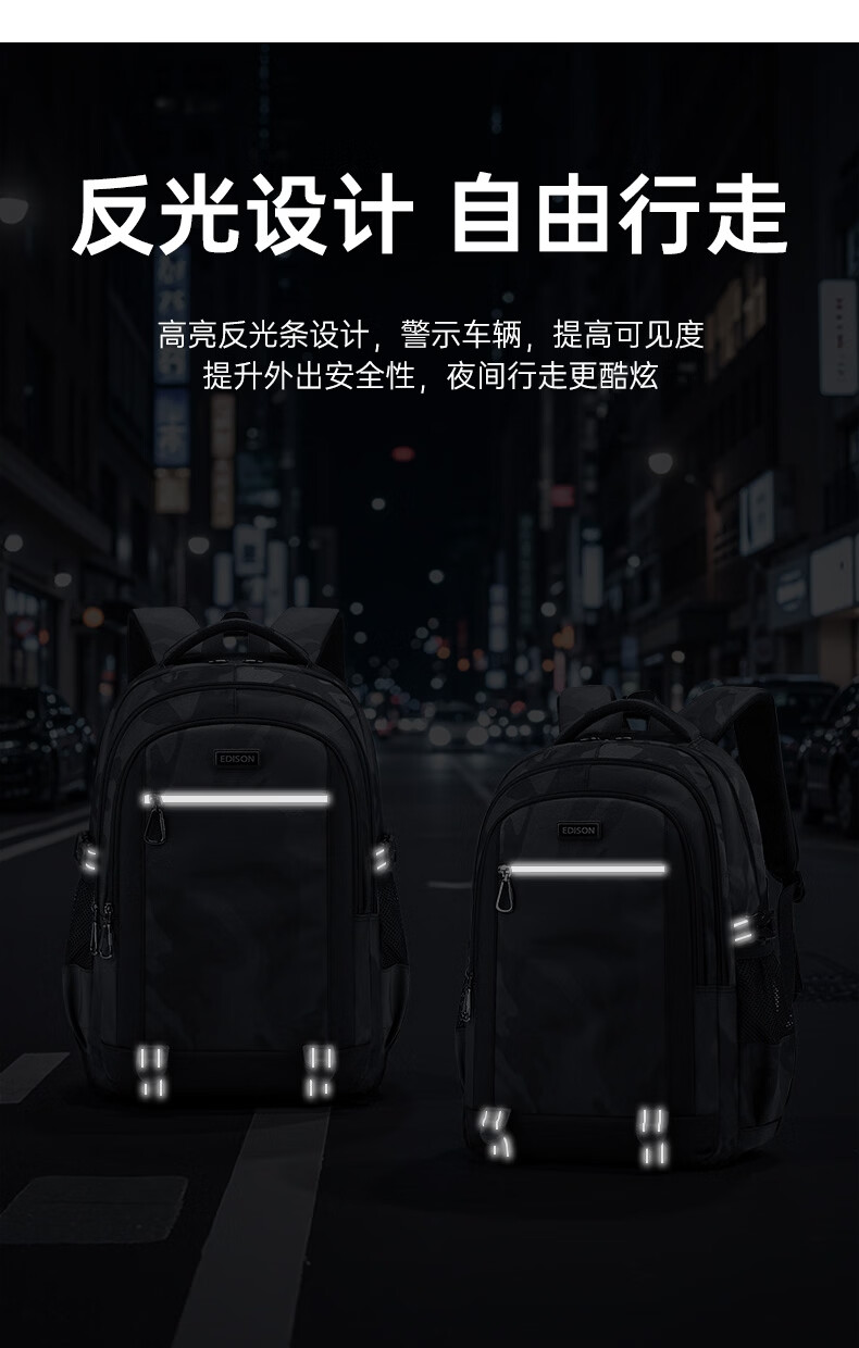 Edison Edison high school student school bag junior high school college student large capacity reflective backpack travel backpack K051-1G