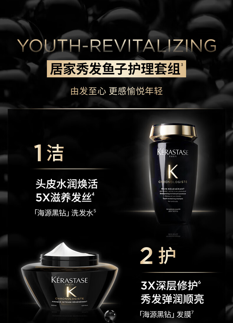 Kérastase Haiyuan Black Diamond Shampoo, Conditioner, Essential Oil and Hair Mask Three-piece Set 525ml Repairs, Moisturizes, Smooth and Leaves Fragrance