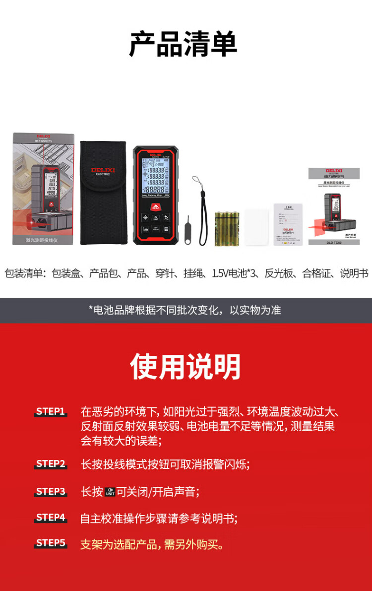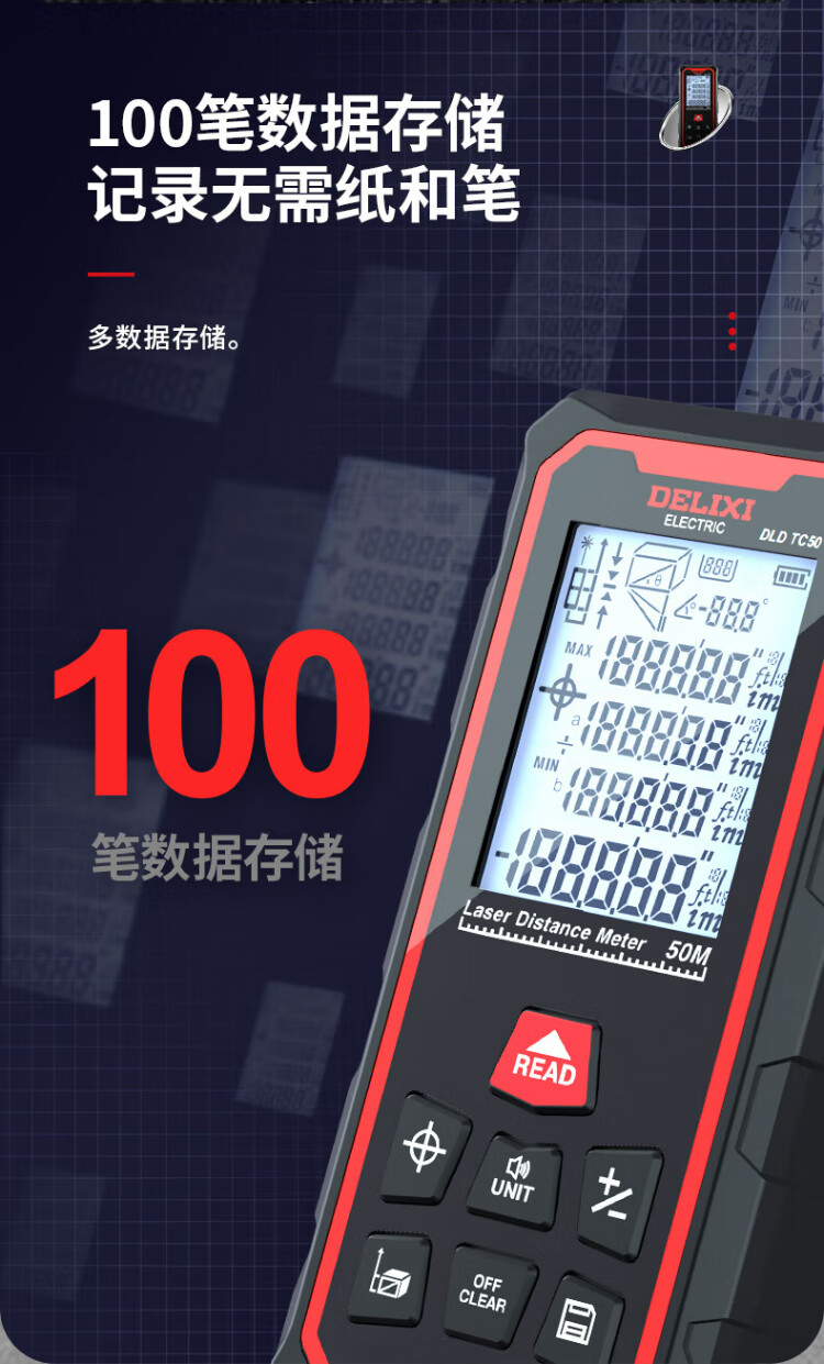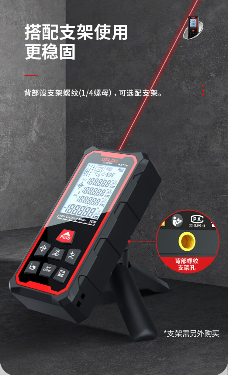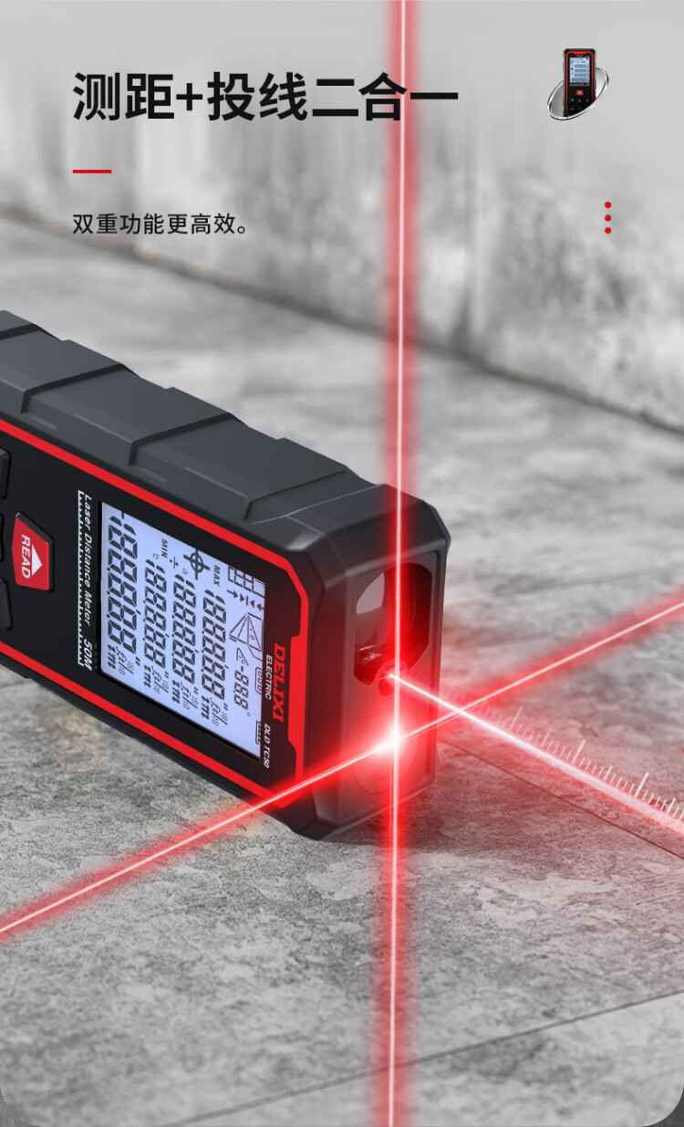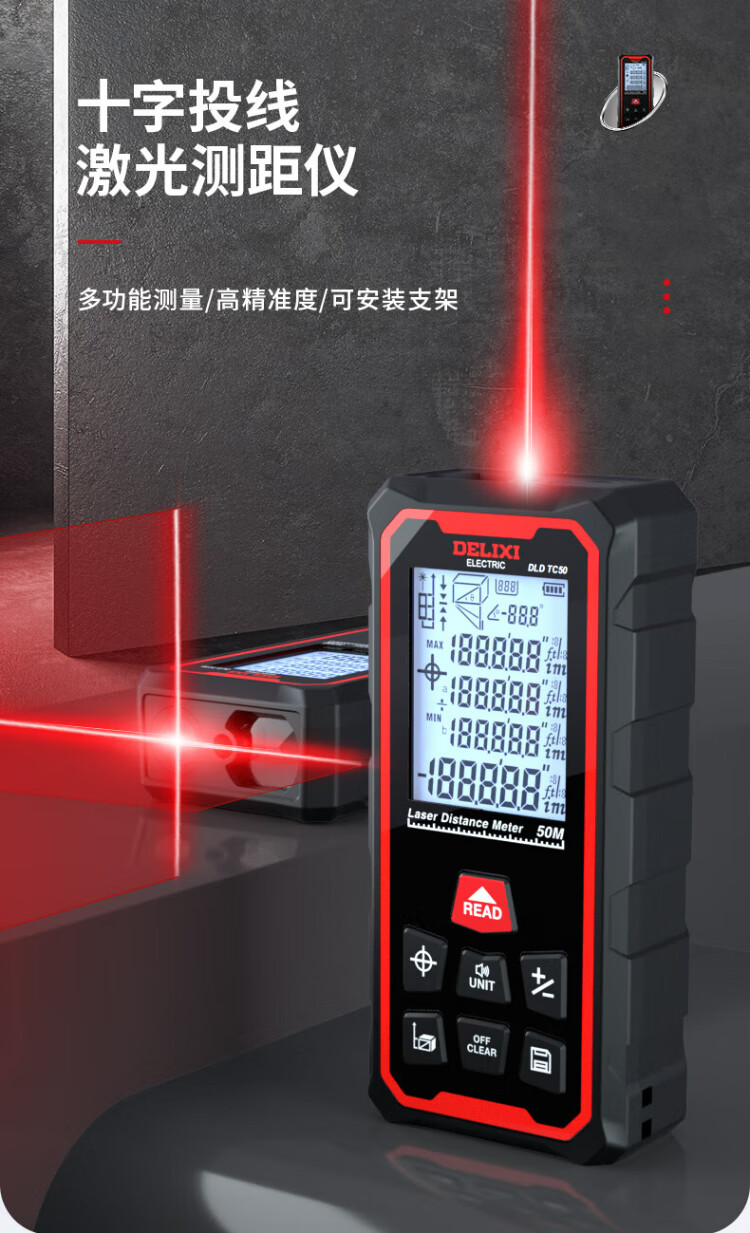 Delixi electrical range finder upgraded high-precision laser household electronic ruler with cast line 50 meter range