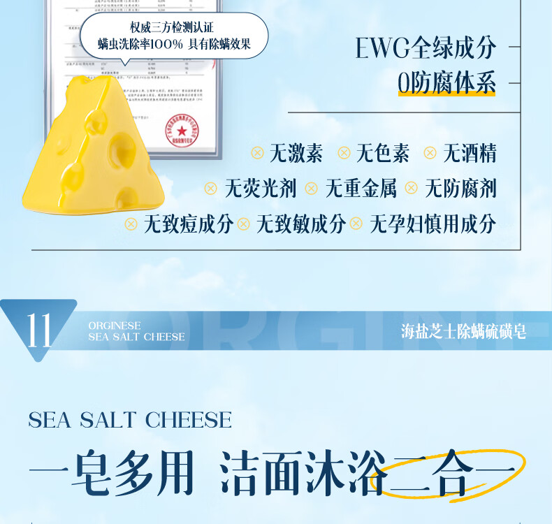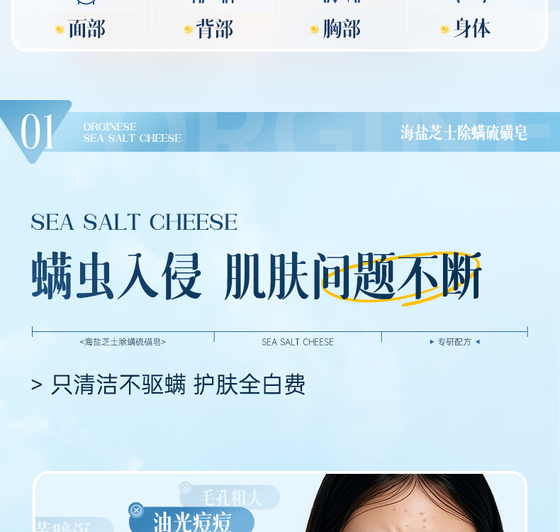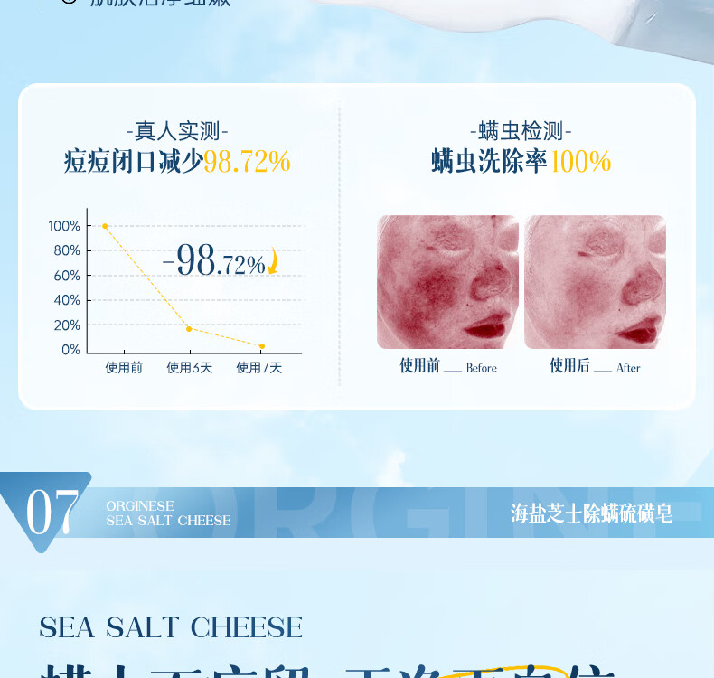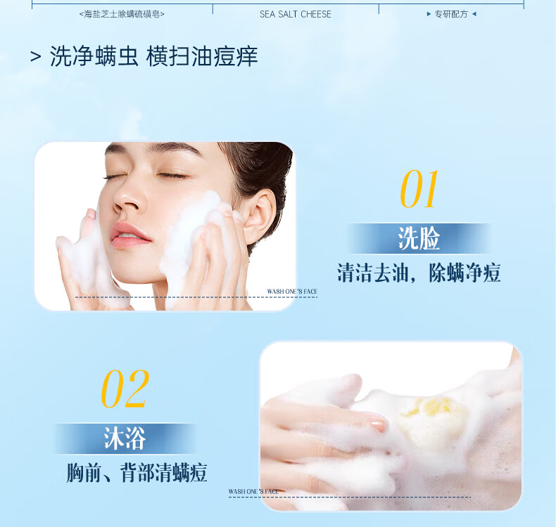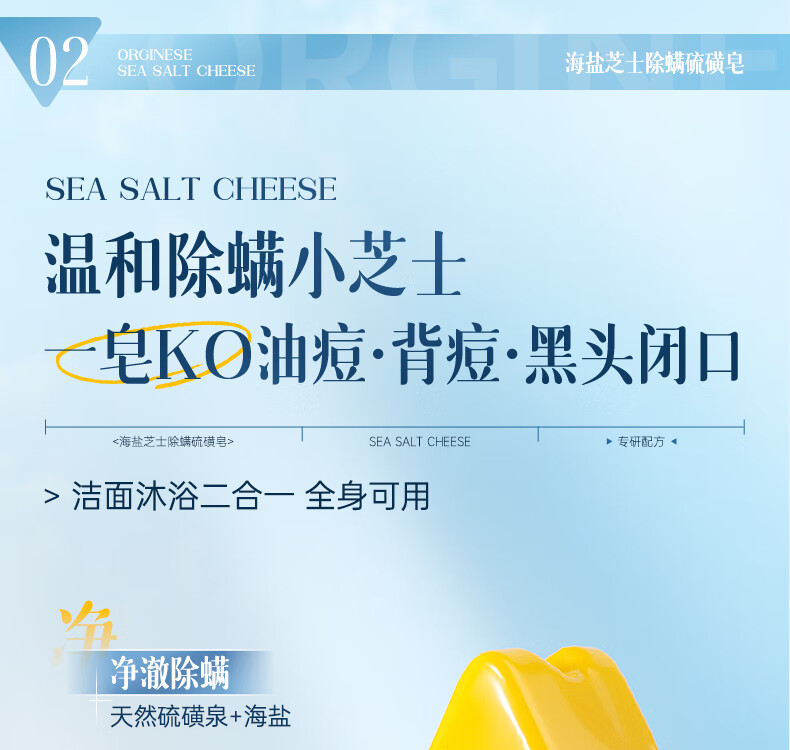 ORGINESE cheese sulfur soap removes mites, removes mites, removes back acne soap, washes face, washes hair, bathes three-in-one for men and women