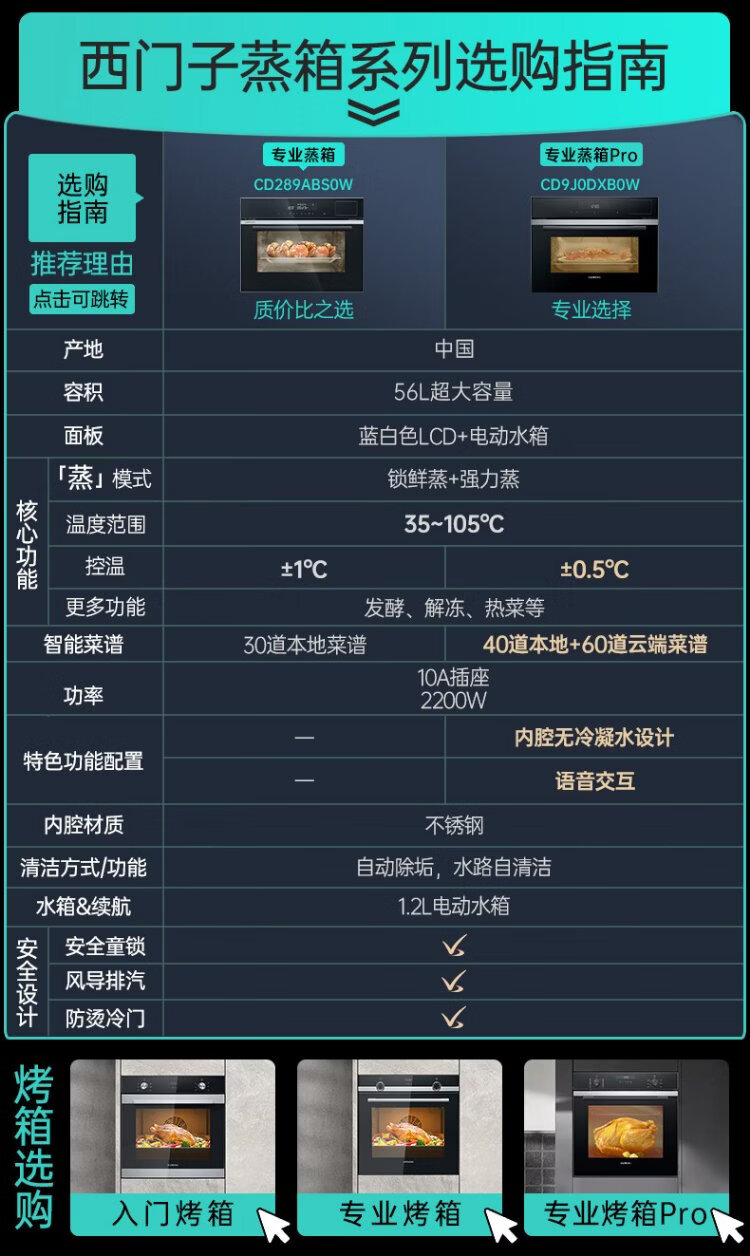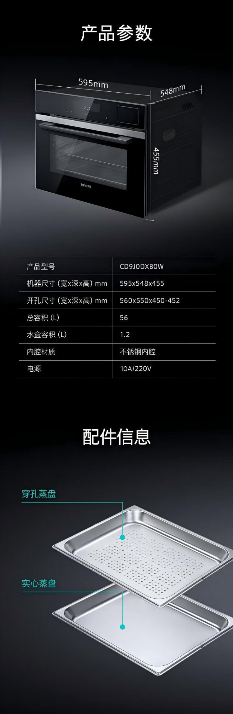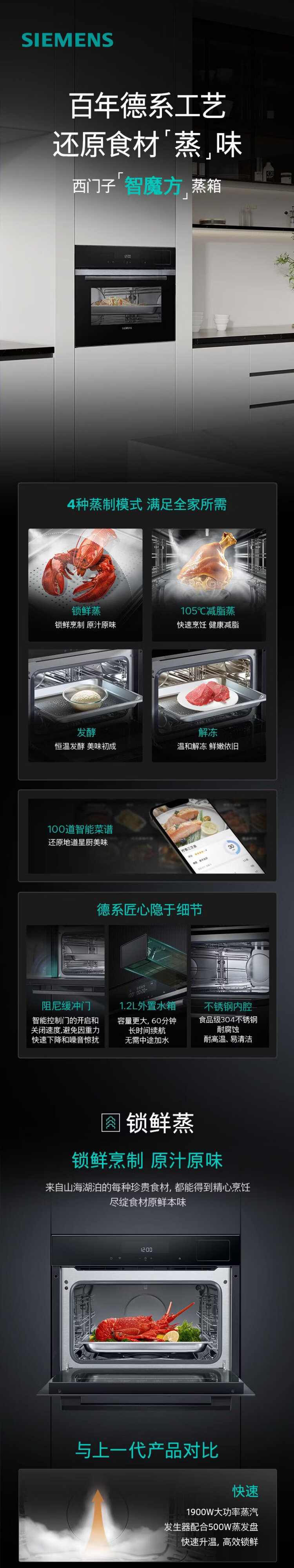 SIEMENS Precision Steam Smart Cube Master Steamer Built-in 56L Easy-to-Clean Household Pure Steamer Electric Steamer CD9J0DXB0W