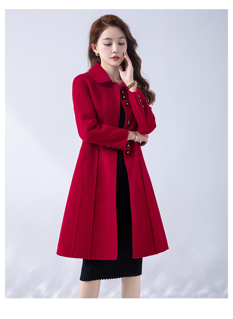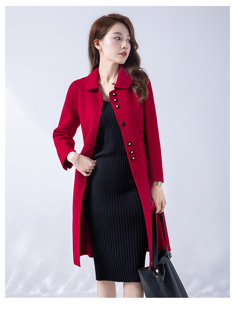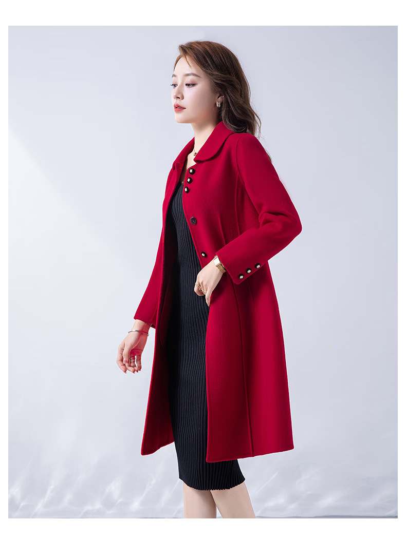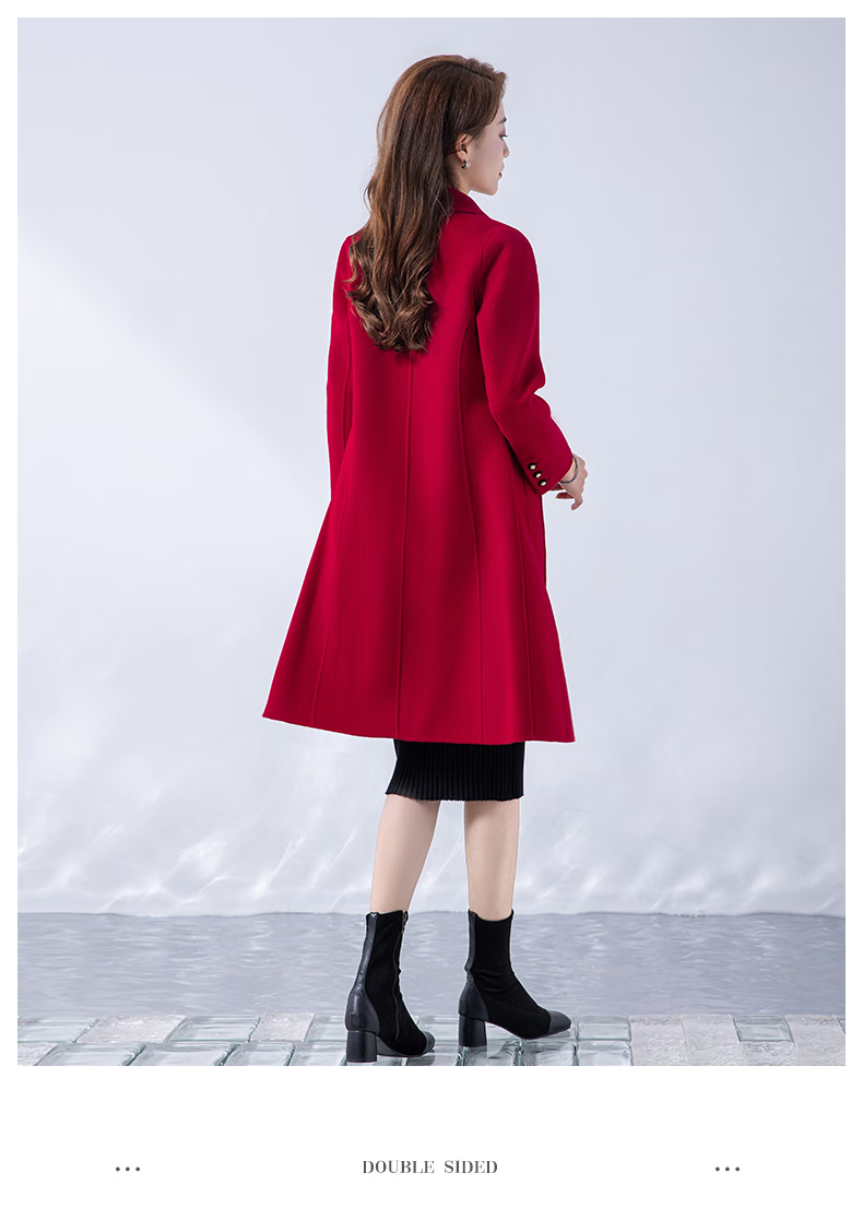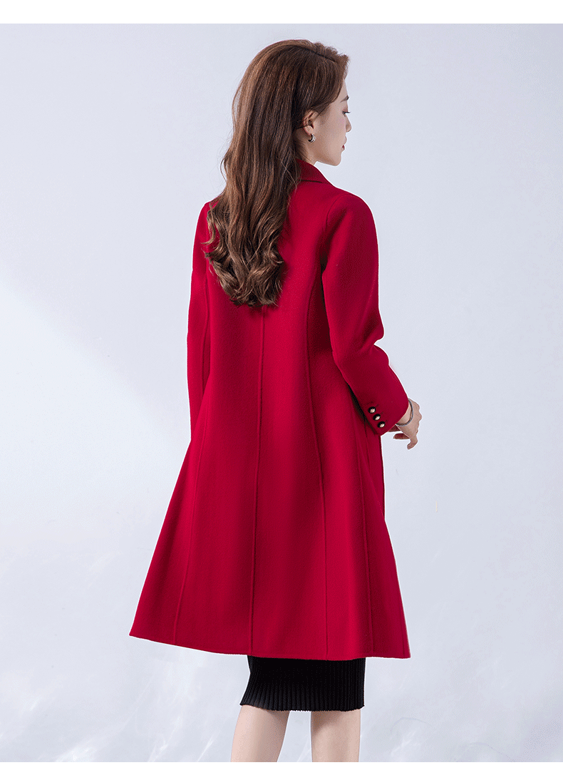 Austrian Double-sided Wool Coat Women's Premium Full Wool Woolen Coat YX21038 Red L