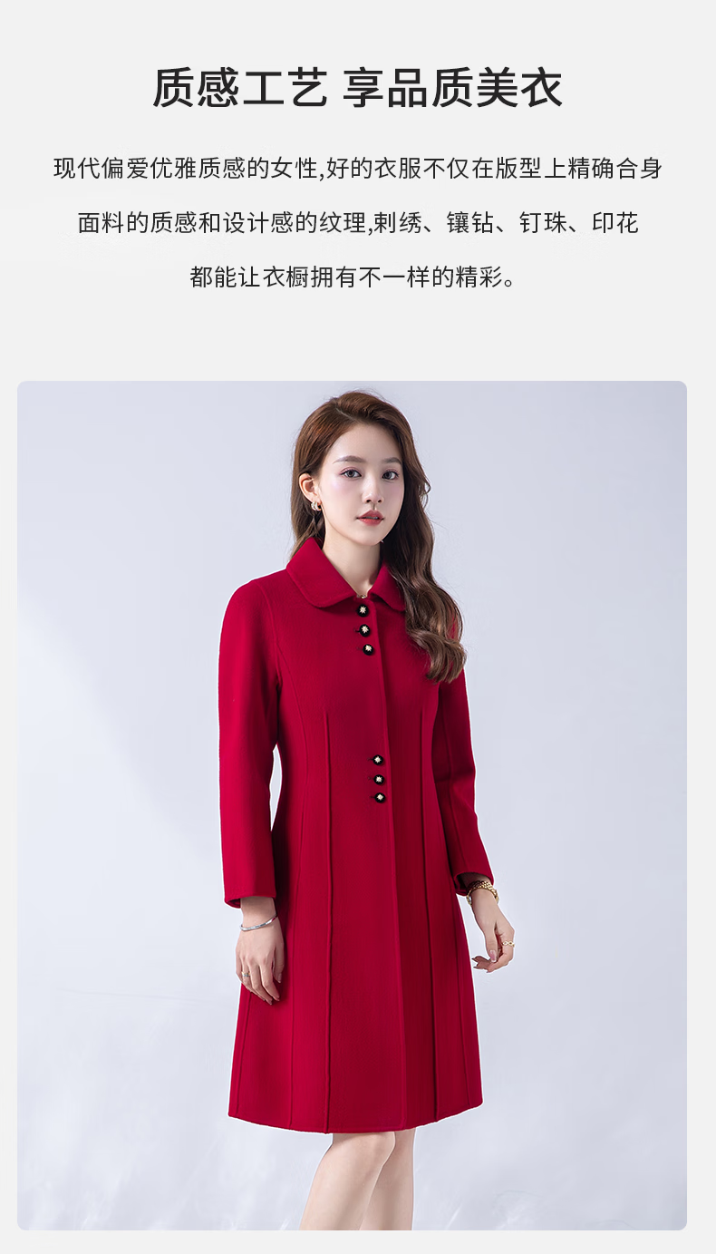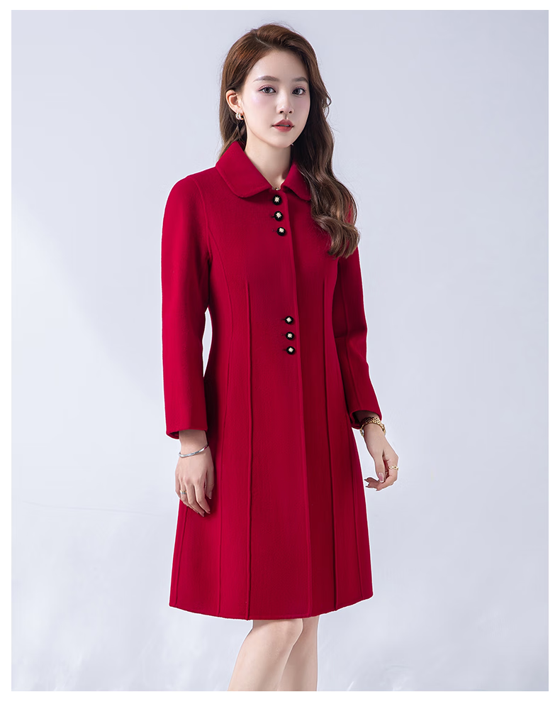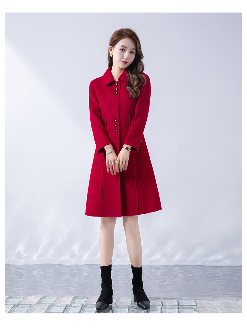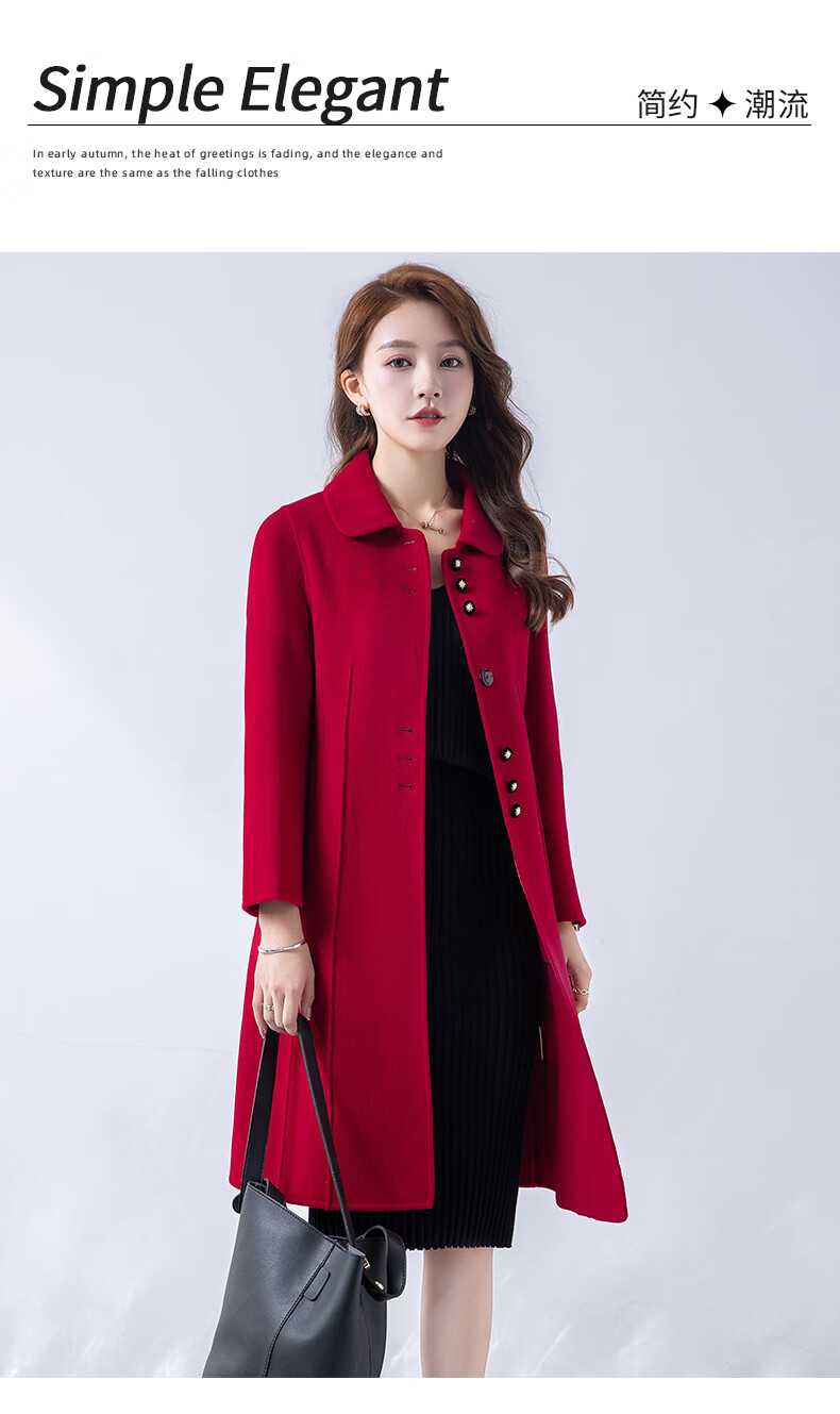 Austrian Double-sided Wool Coat Women's Premium Full Wool Woolen Coat YX21038 Red L