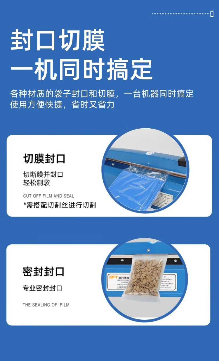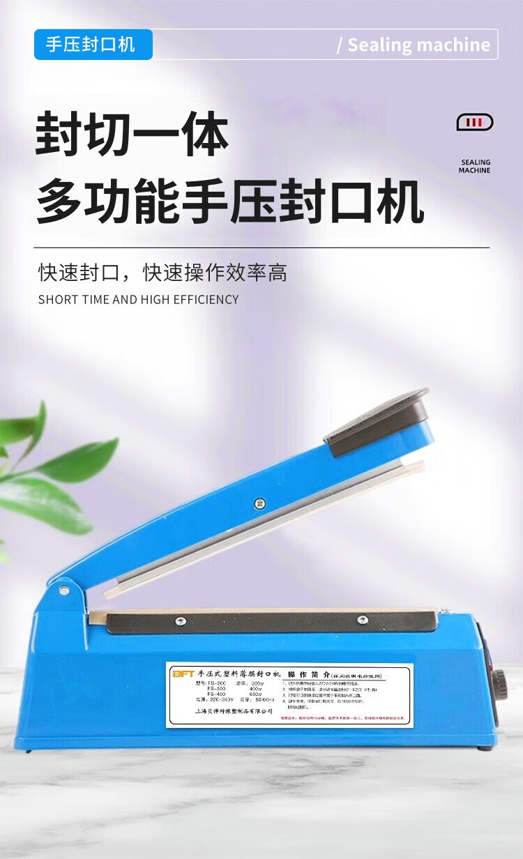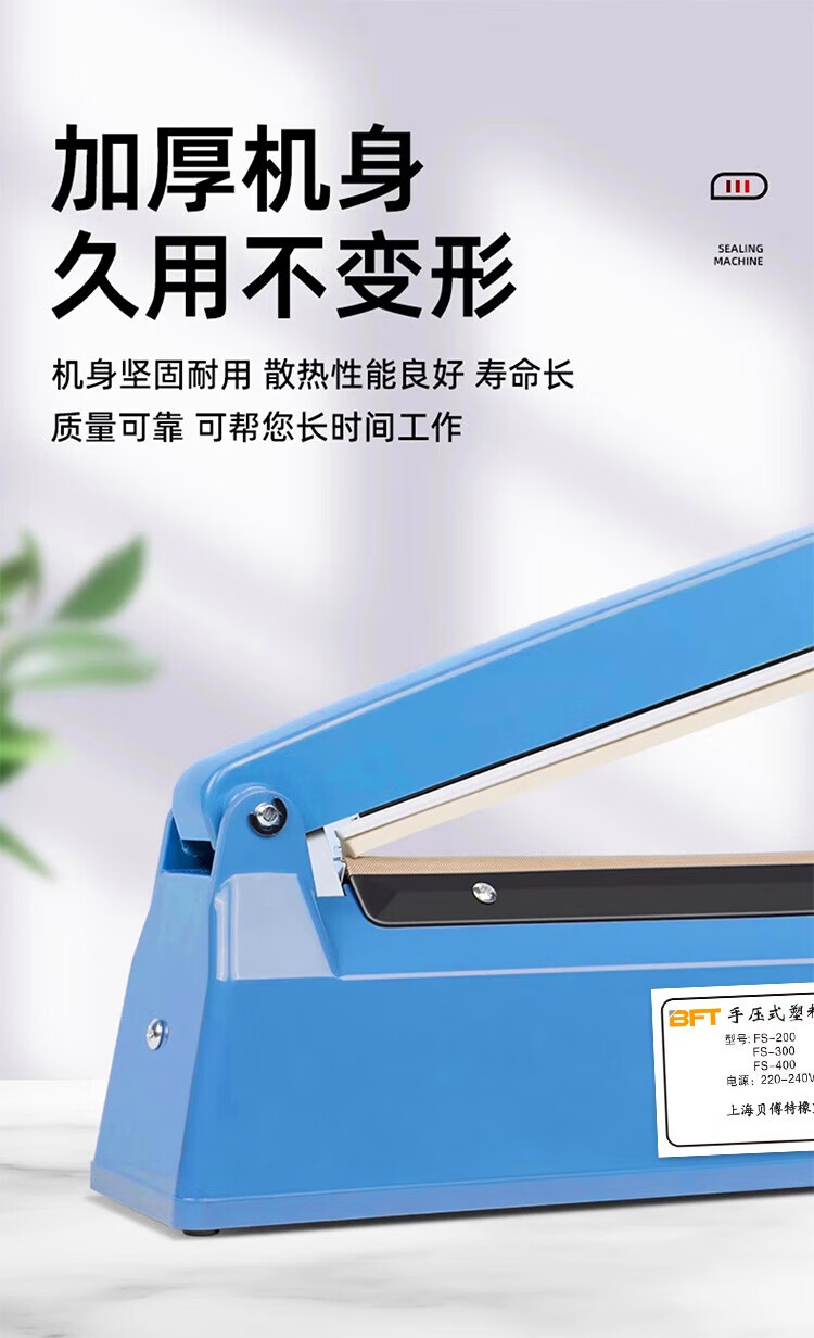 Beifote hand pressure sealing machine plastic sealing machine commercial packaging machine aluminum foil bag food small tea moon cake film sealing and cutting machine PFS-400A