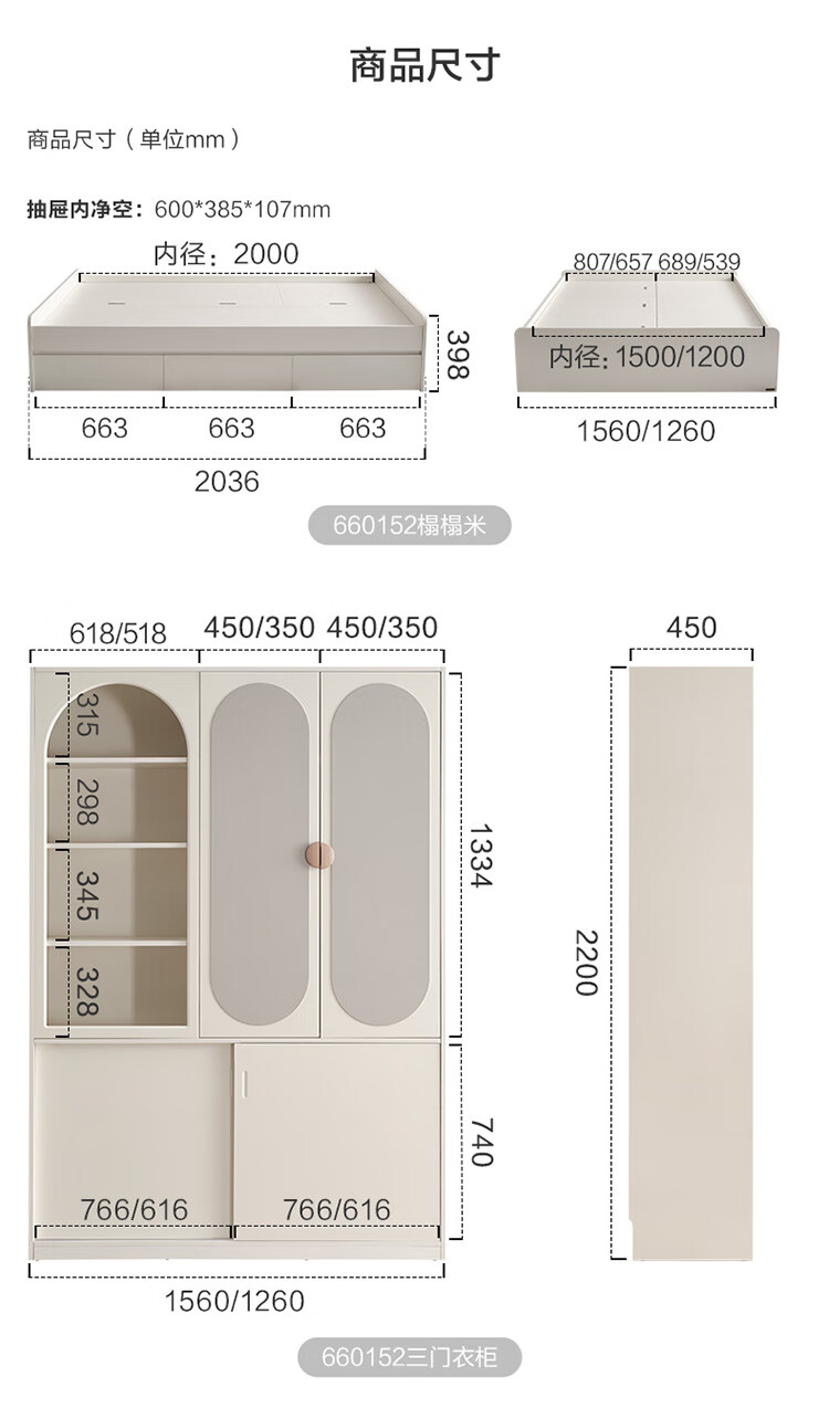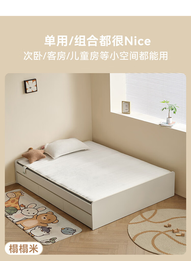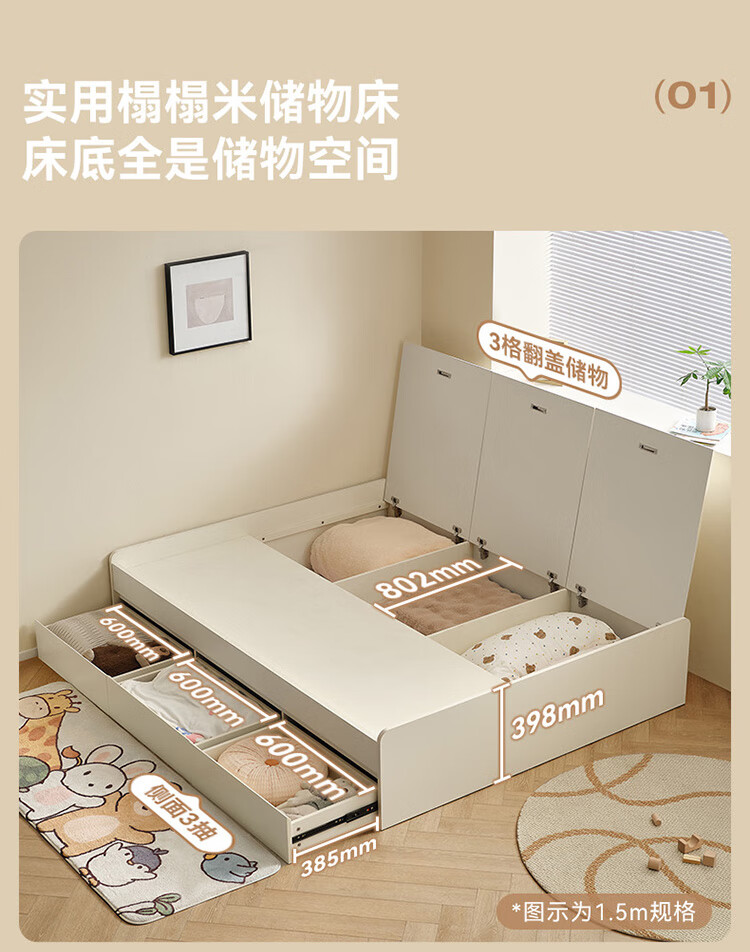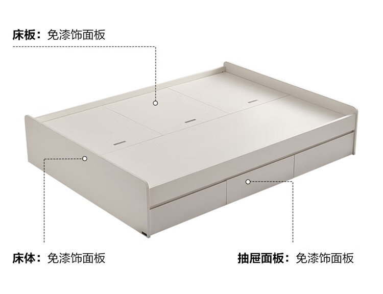 Quanyou Home Simple Cream Style Bedroom No Bedside Tatami 1.5m 2m Student Bed Storage Storage Panel Bed