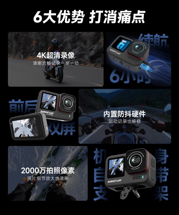 Mountain Dog A7 action camera 4k high-definition motorcycle driving recorder bicycle helmet vlog riding fishing waterproof outdoor small camera simple configuration