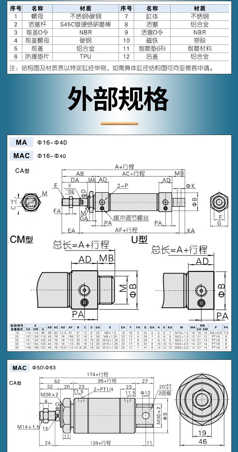 AirTAC stainless steel mini cylinder MA16X100SCA can be customized