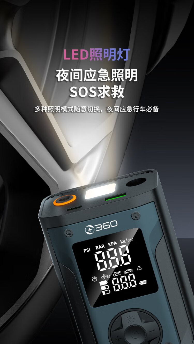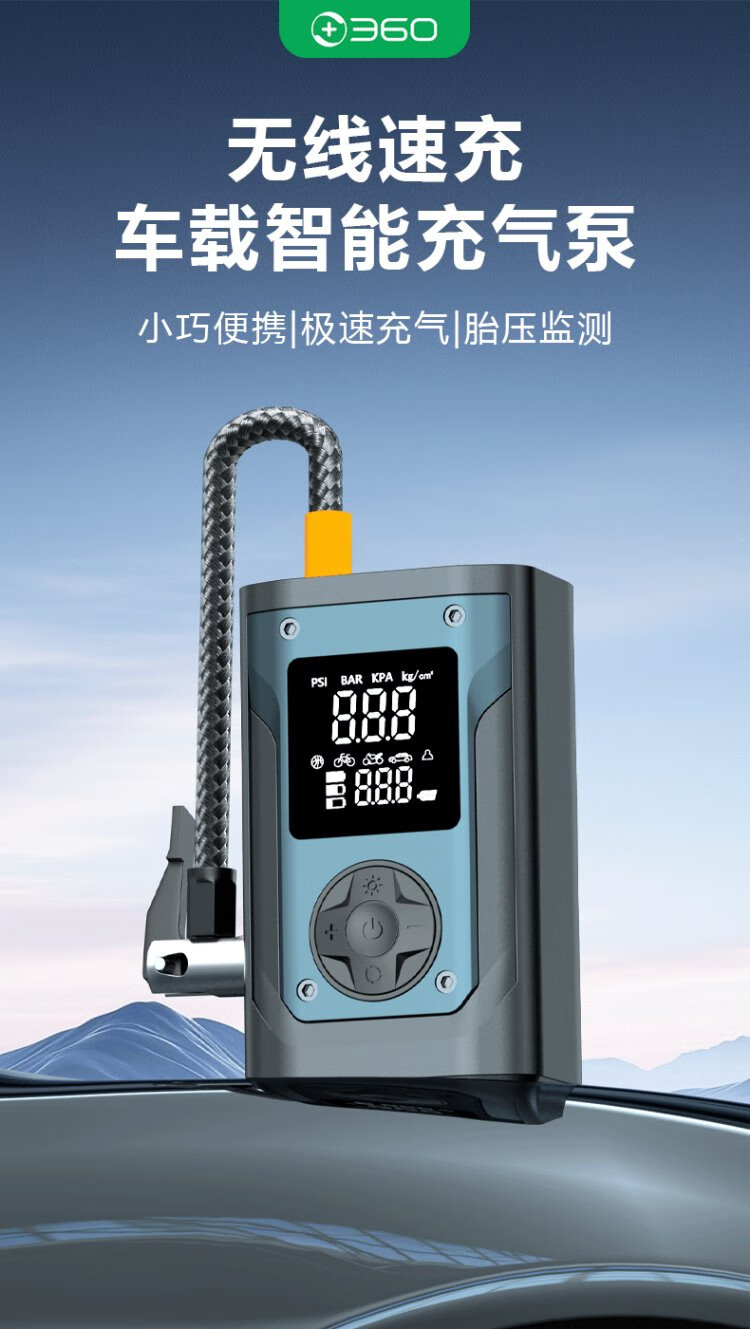 360 car air pump tire bicycle air pump electric wireless car air pump power bank tire pressure monitoring