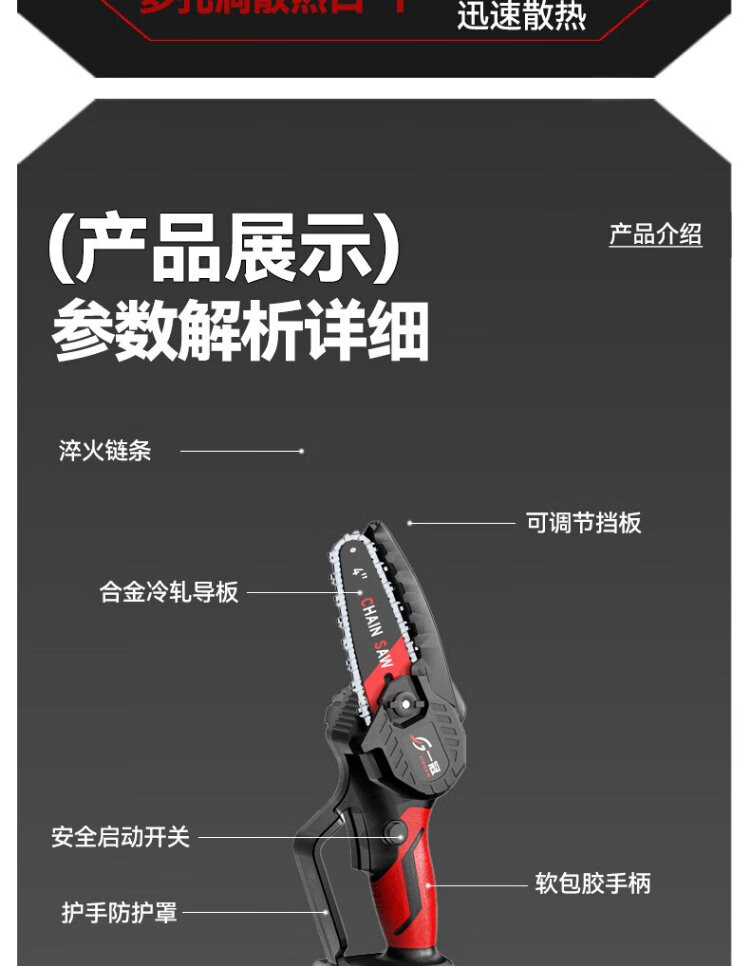Yiguan household rechargeable lithium electric saw small mini portable one-hand saw electric chain saw garden outdoor logging and pruning
