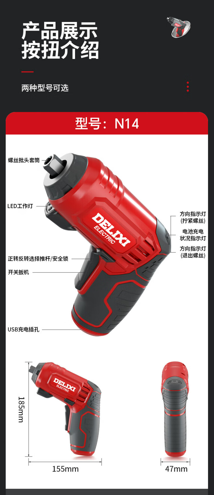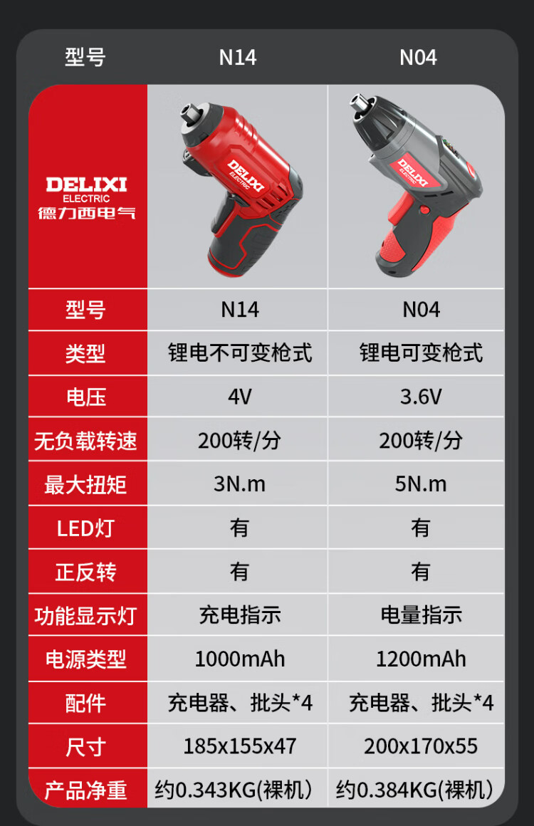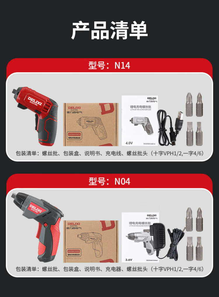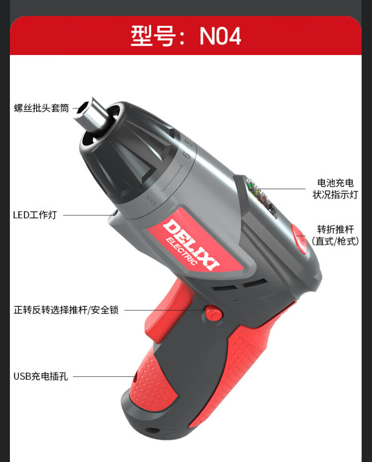 Delixi Electric Electric Screwdriver Household Small Rechargeable Lithium Screwdriver Mini Electric Screwdriver 4V Universal Model