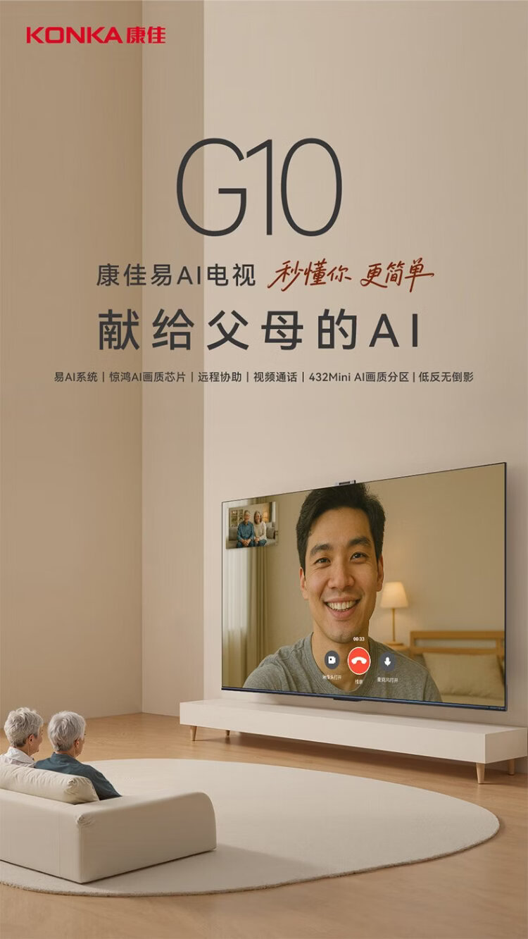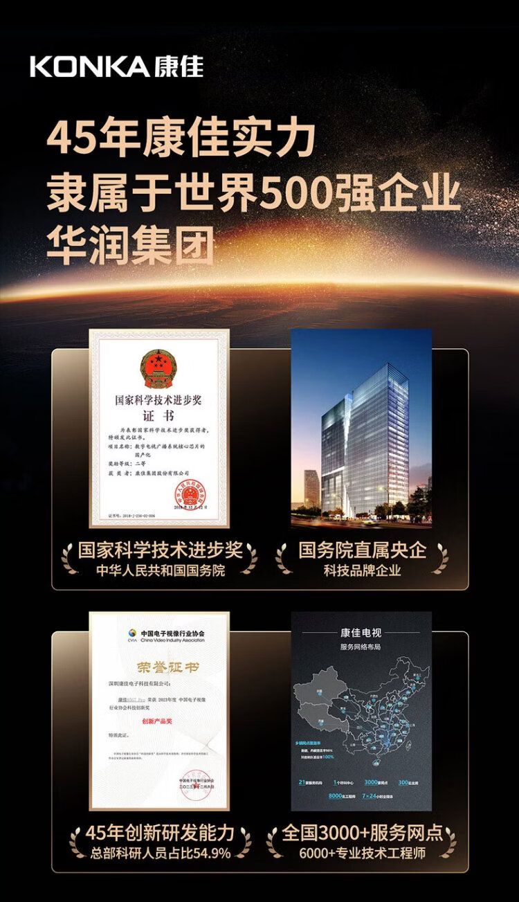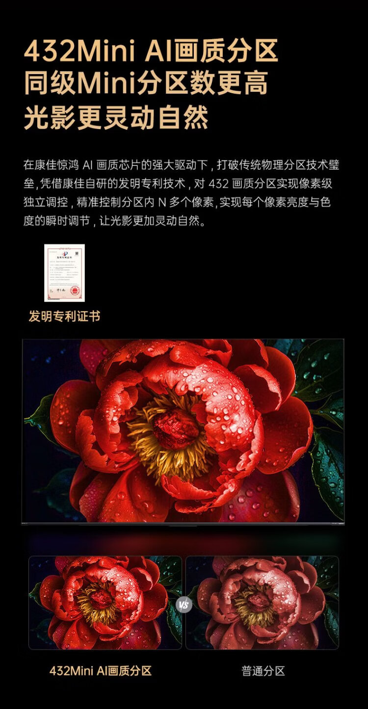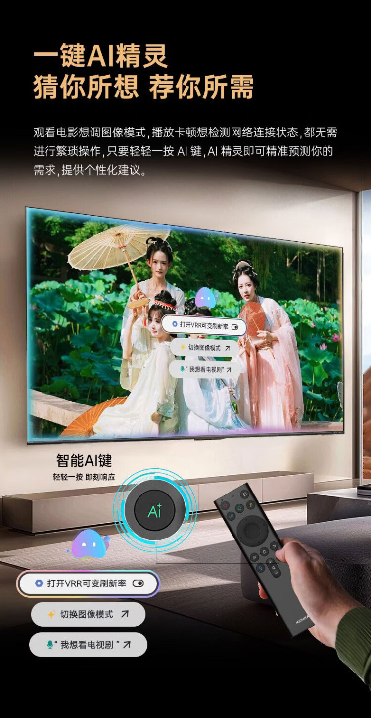 Konka TV 65G10 65-inch MiniLED 288Hz ultra-high brush 432 partition low reflection screen Jinghong AI image quality chip First-class energy efficiency National subsidies for home appliances