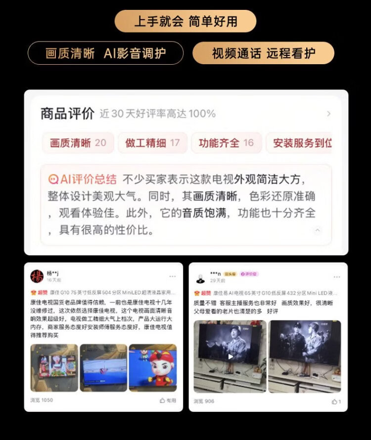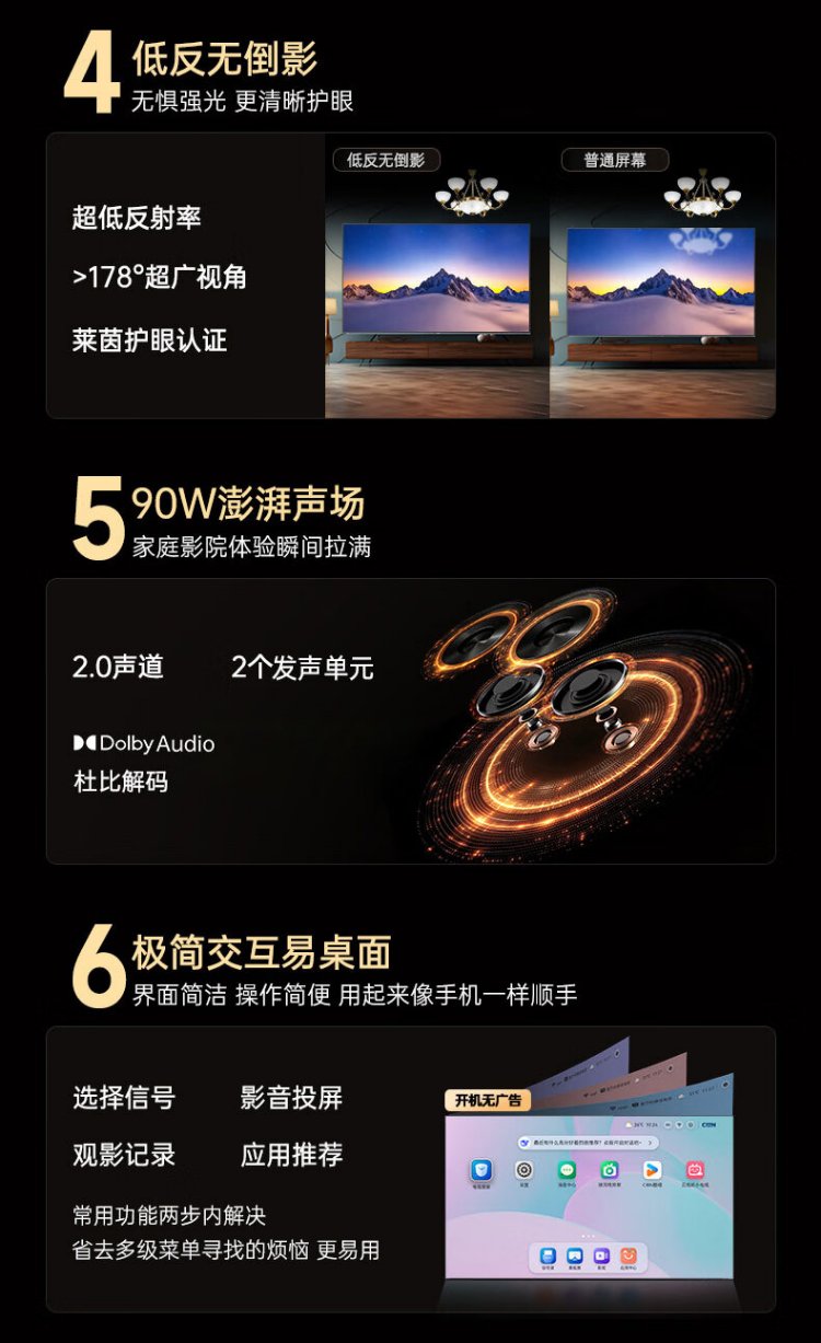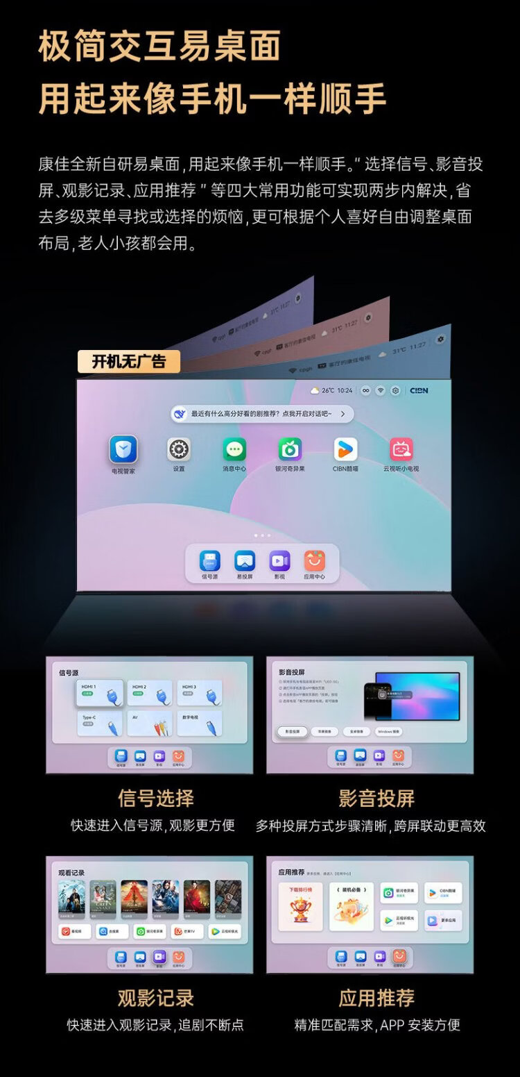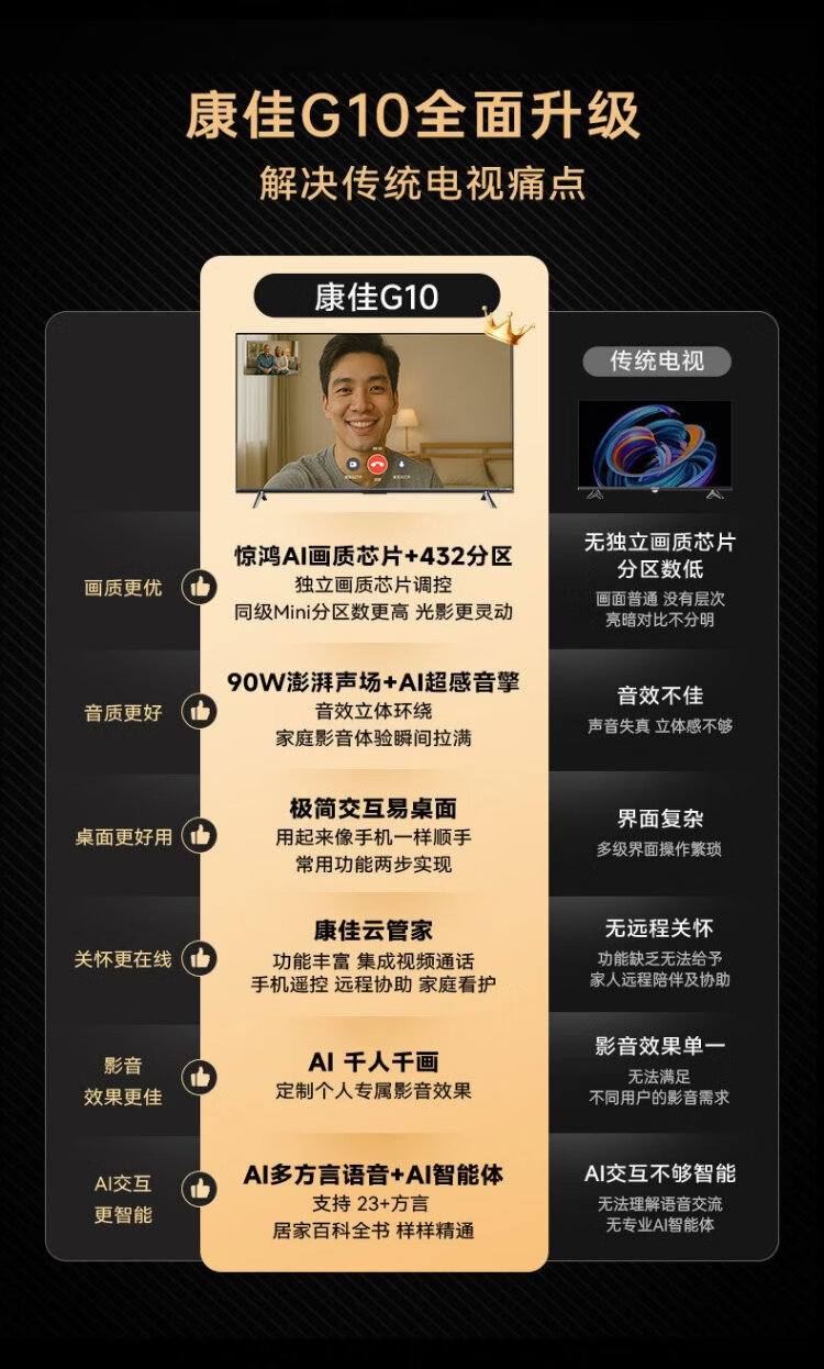Konka TV 65G10 65-inch MiniLED 288Hz ultra-high brush 432 partition low reflection screen Jinghong AI image quality chip First-class energy efficiency National subsidies for home appliances