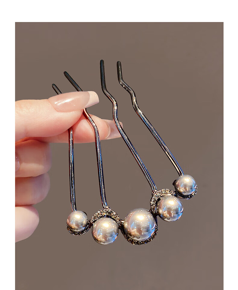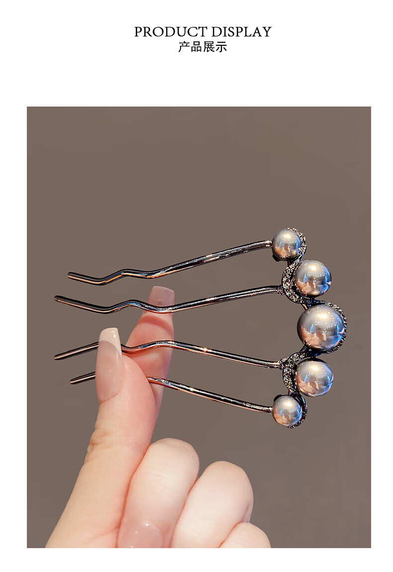 Gemeng U-shaped hairpin hairpin hair artifact hairpin pearl four-tooth comb U-shaped clip ball hair comb 2 pack 2 pieces