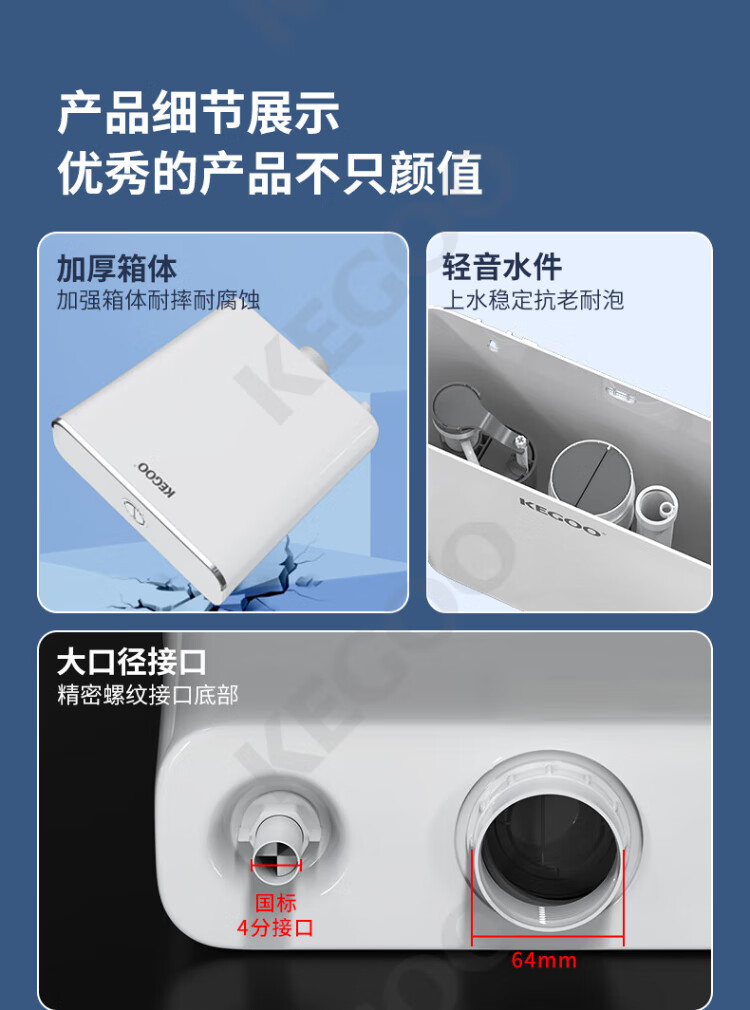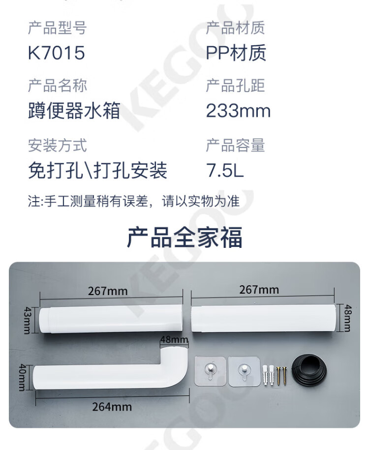 KEGOO squat toilet flush tank toilet punch-free toilet bathroom squat pit squat toilet accessories universal full set K7015