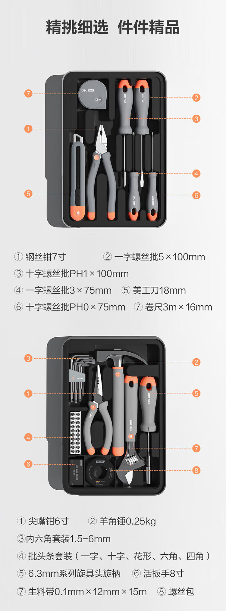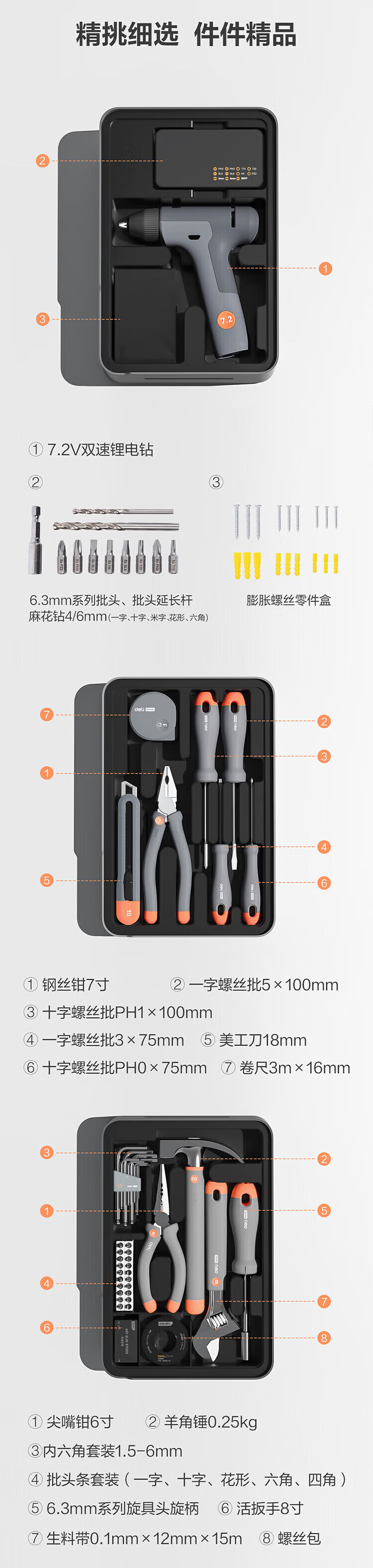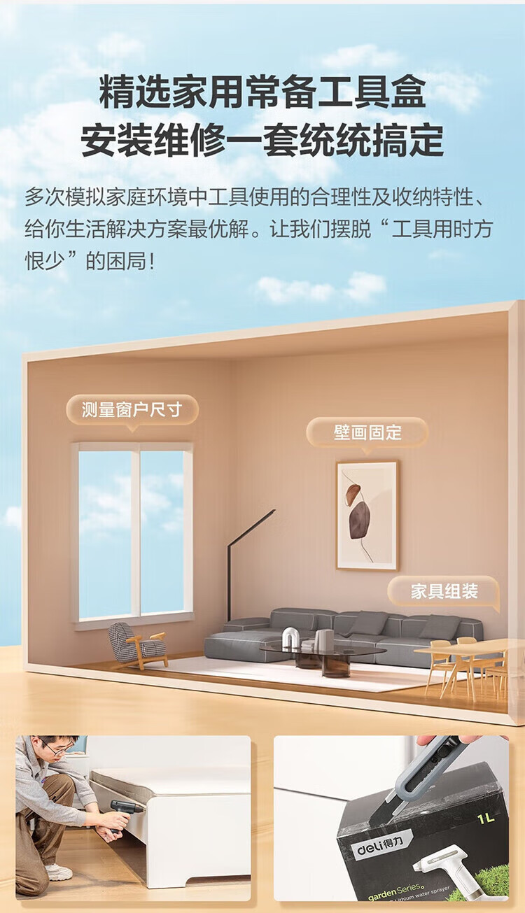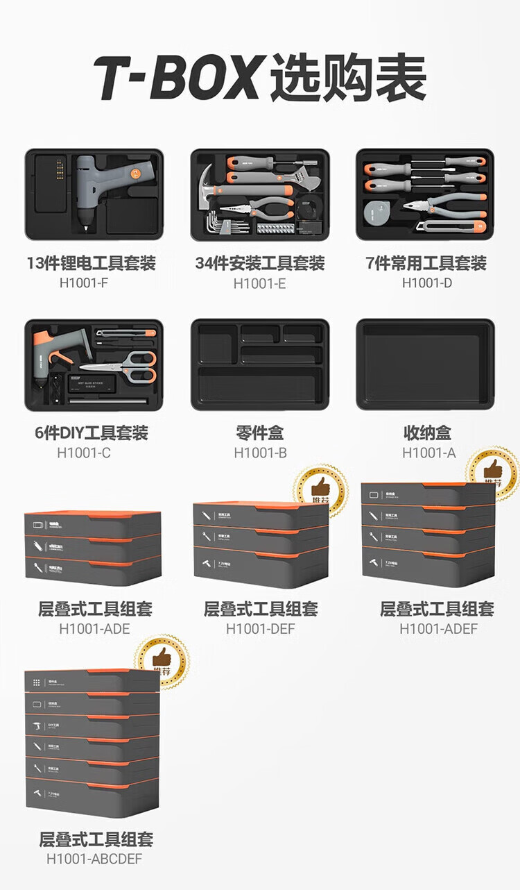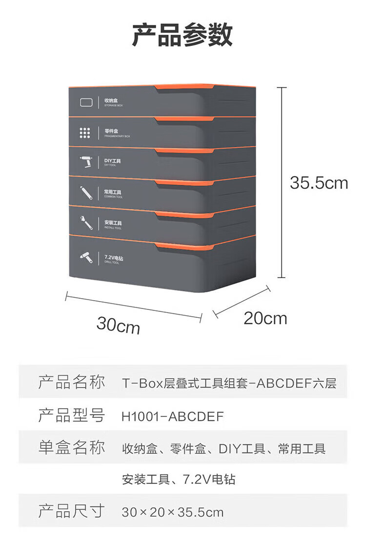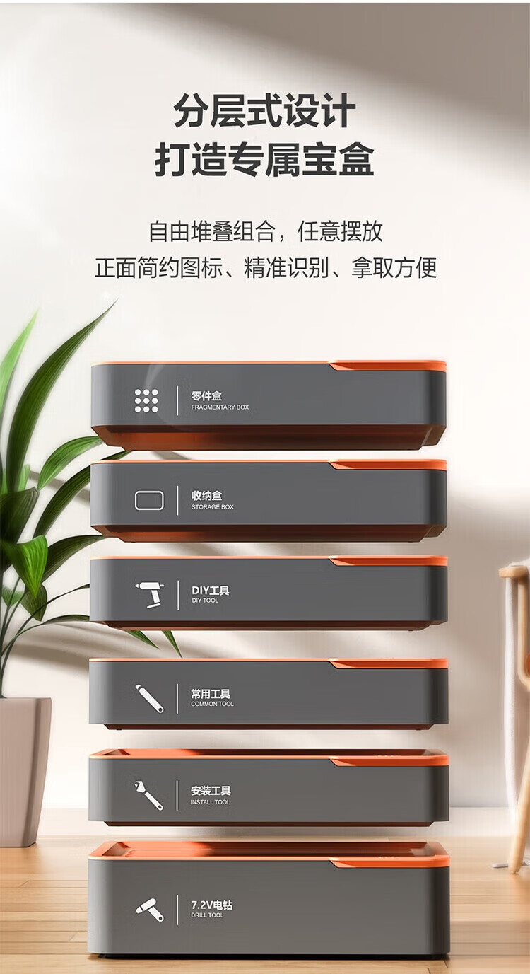 Deli T-BOX household stackable set multi-functional repair tool box electric drill electrician tool H1001-ABCDEF