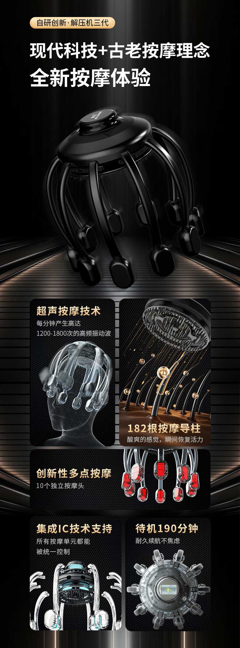 Hezheng decompression machine third generation head massager Octopus electric massager small program operation scalp acupressure massage claw birthday gift for male and female friends New Year gift