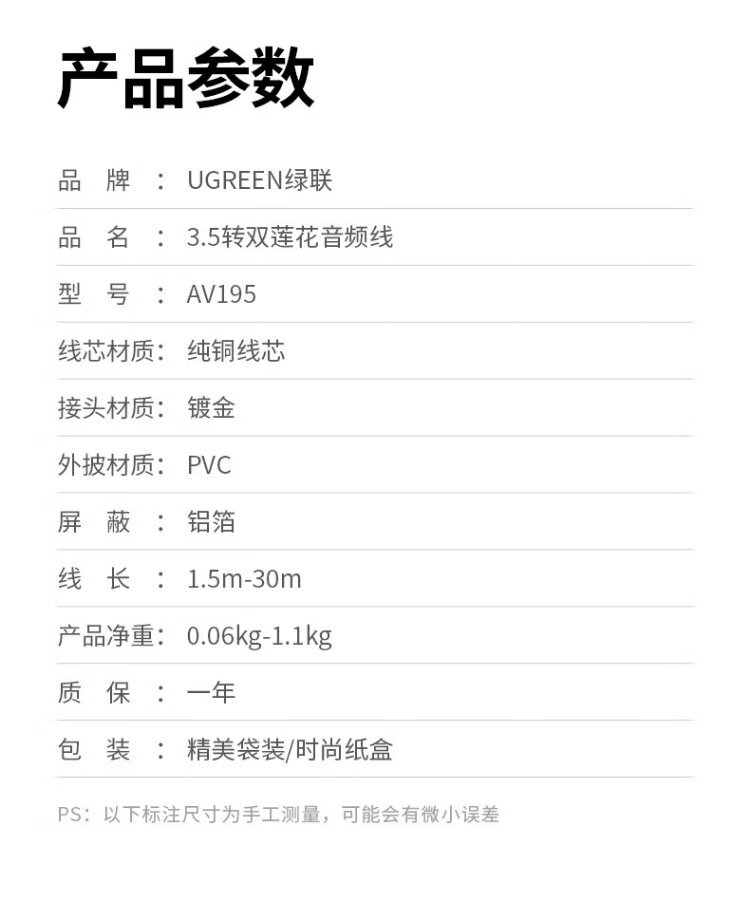 Greenlink 3.5mm to double lotus head audio cable, one into two, red and white 2RCA male to male one to two connection cable, mobile phone computer TV adapter audio amplifier 1.5 meters 90246