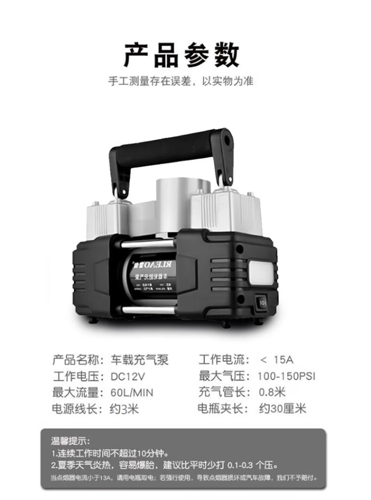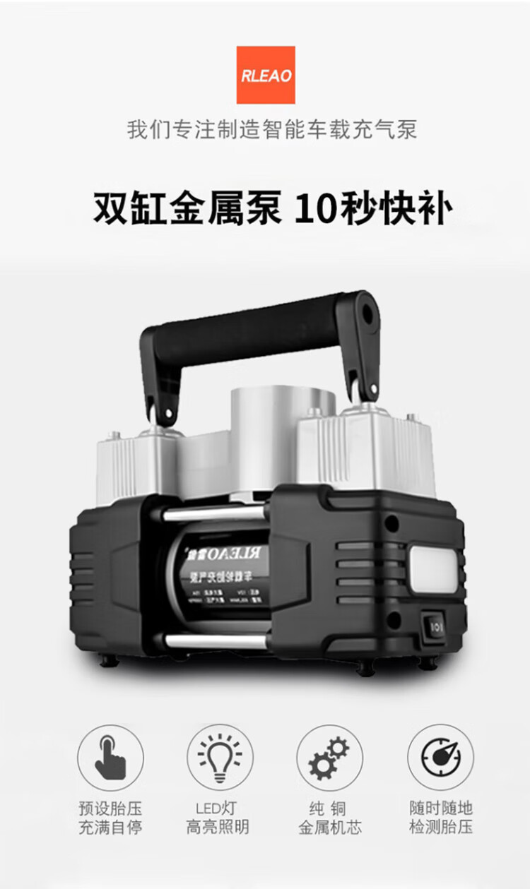 Leo double-cylinder car air pump high-pressure car air pump double-cylinder mechanical watch manual shutdown
