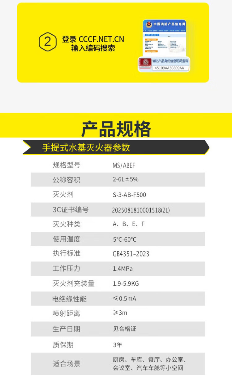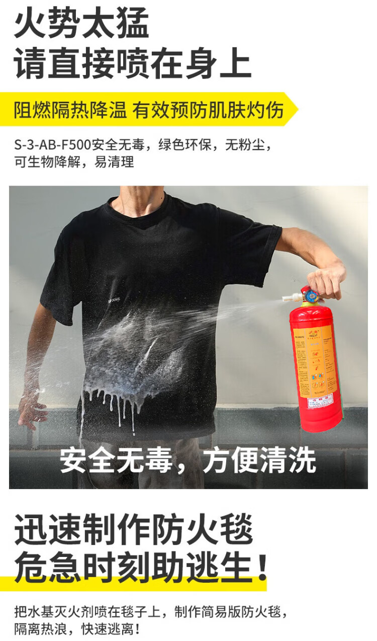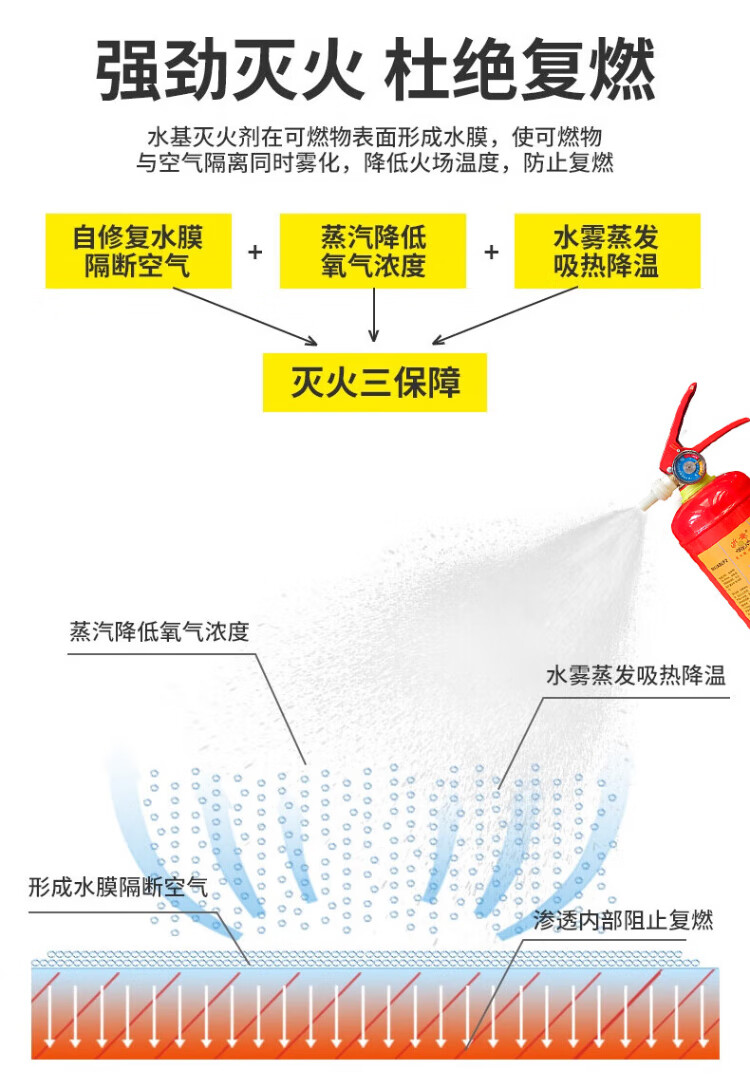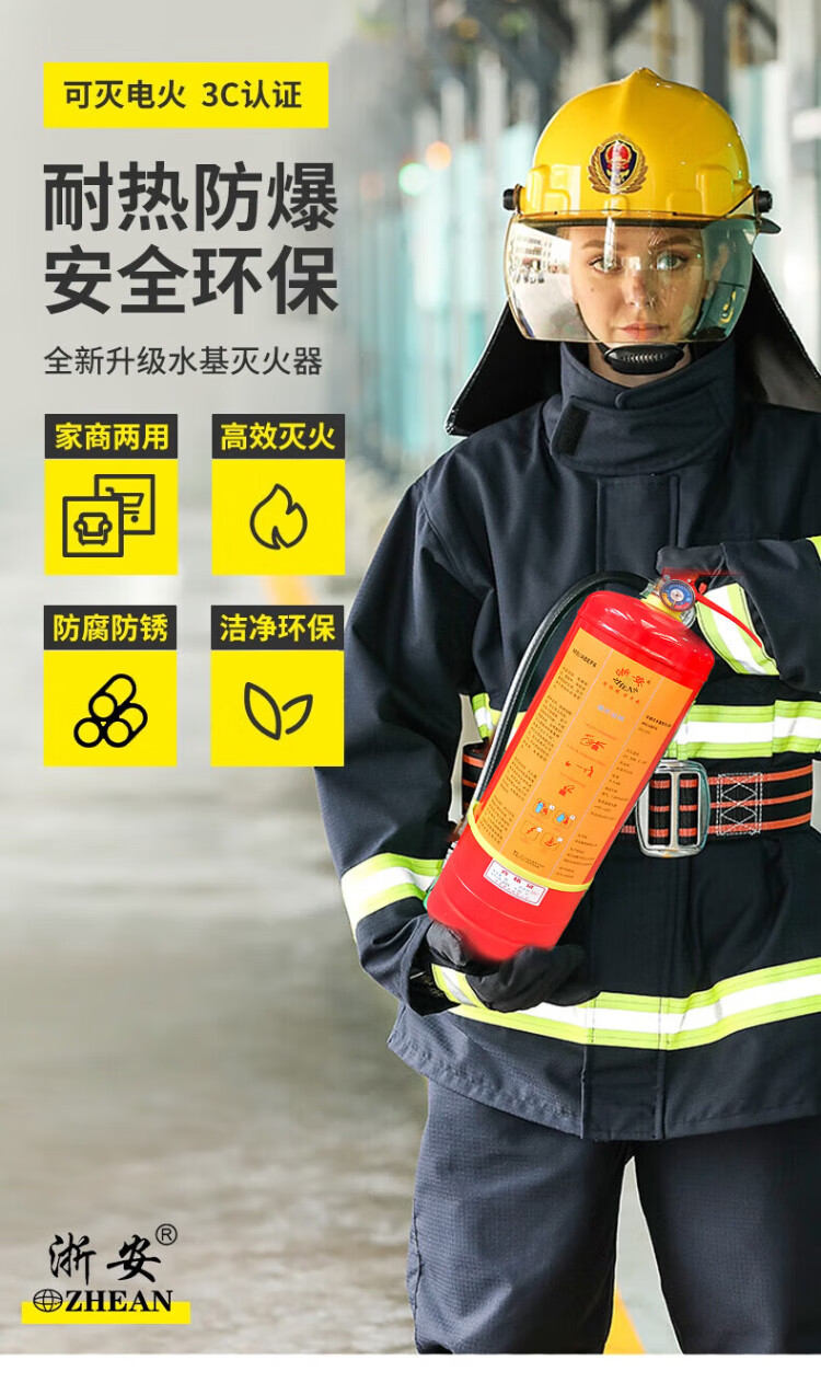 Zhe'an Water-based Fire Extinguisher 3L Portable New National Standard 2025 Green Environmental Protection Vehicle-mounted Commercial Vehicle Annual Inspection National Fire Certification Fire Equipment Beijing Warehouse Delivery