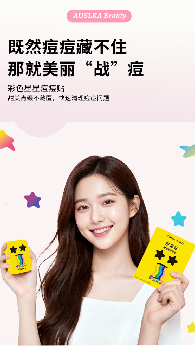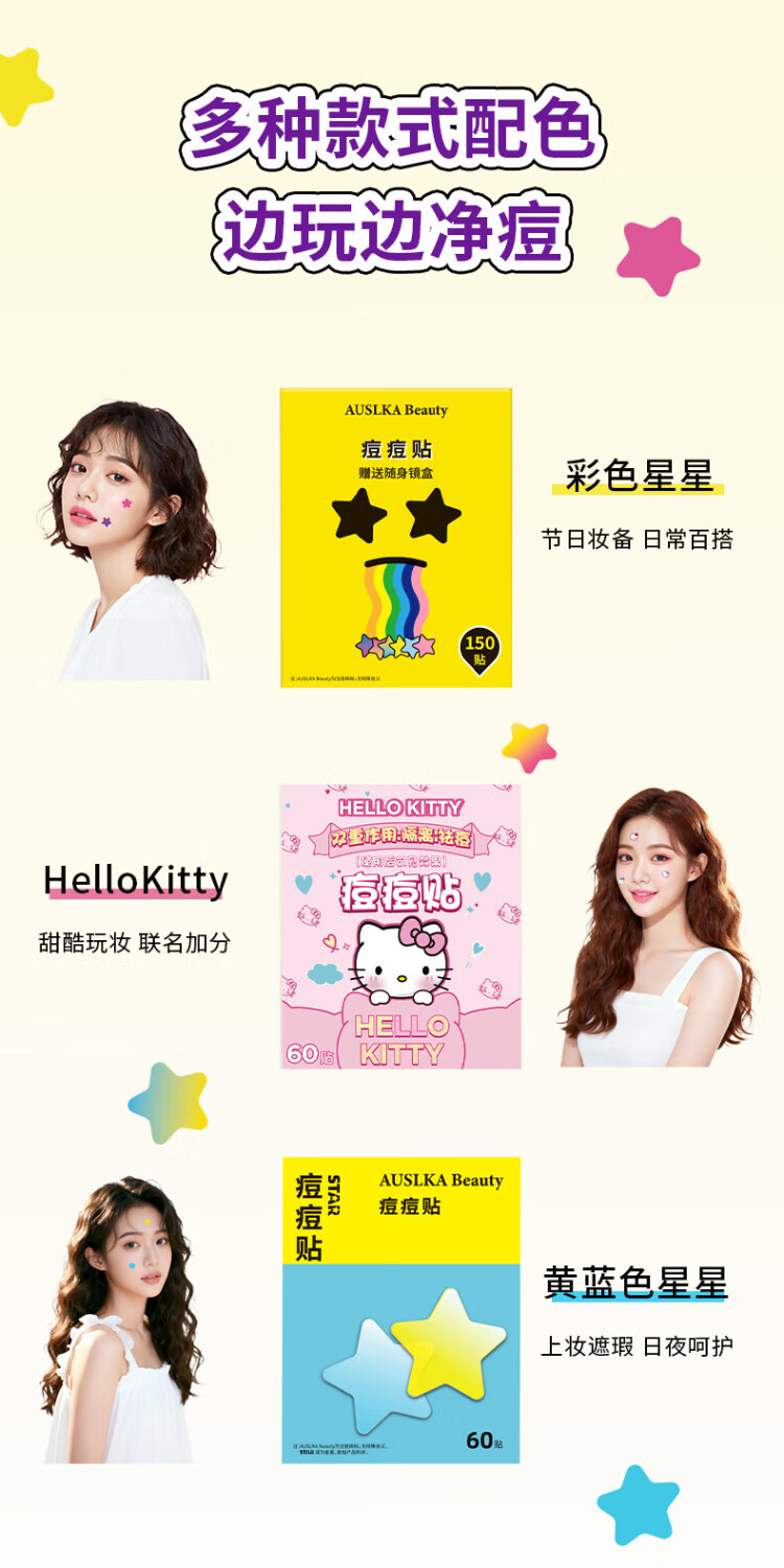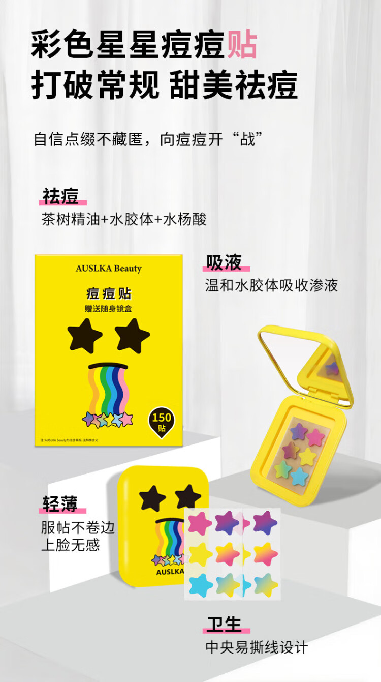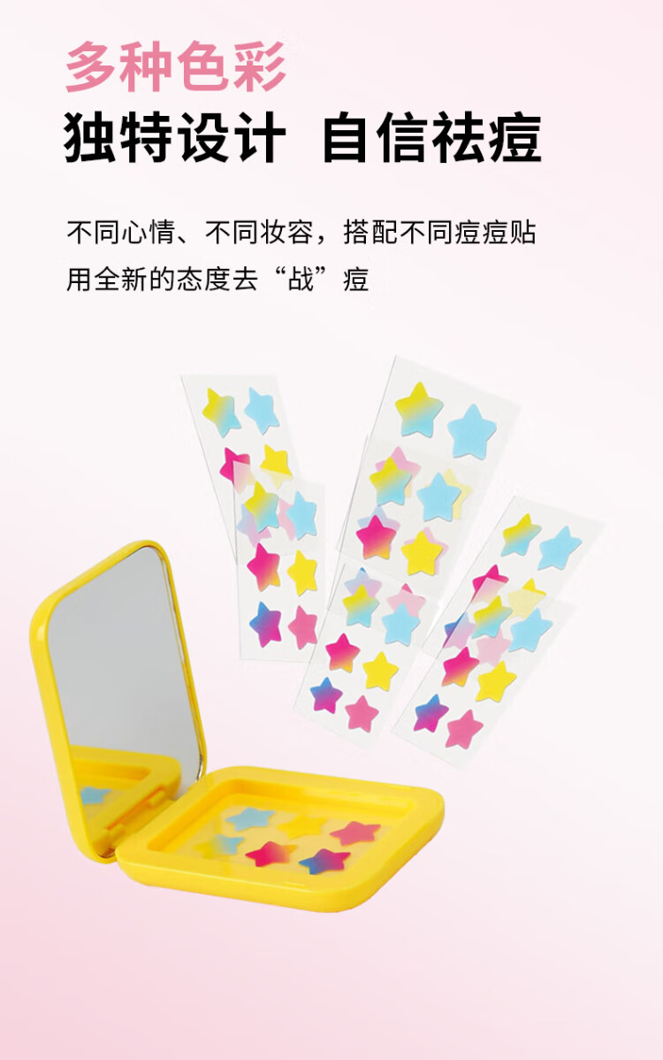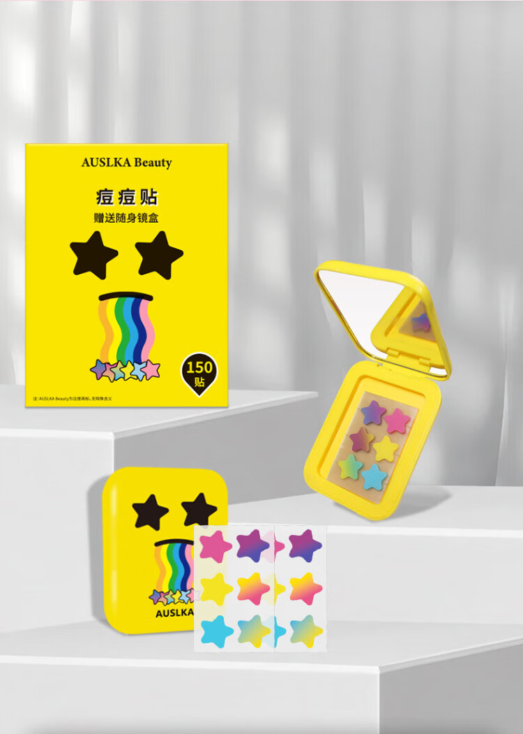AUSLKA Beauty Colorful Star Acne Patch Comes with Mirror Case Lightweight Breathable Concealer Hydrocolloid Skin Friendly Anti-Acne Student Party