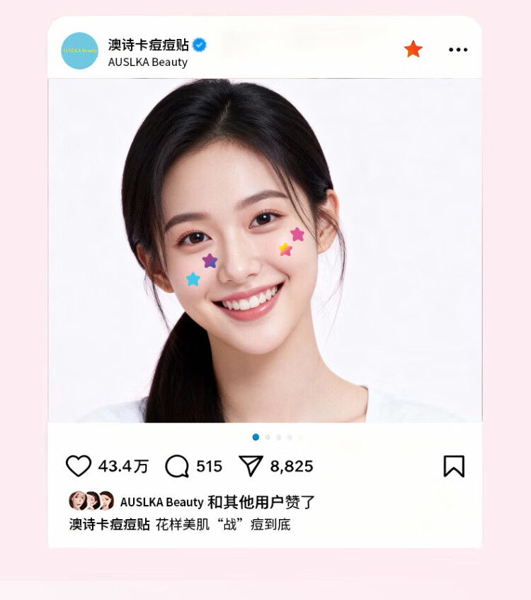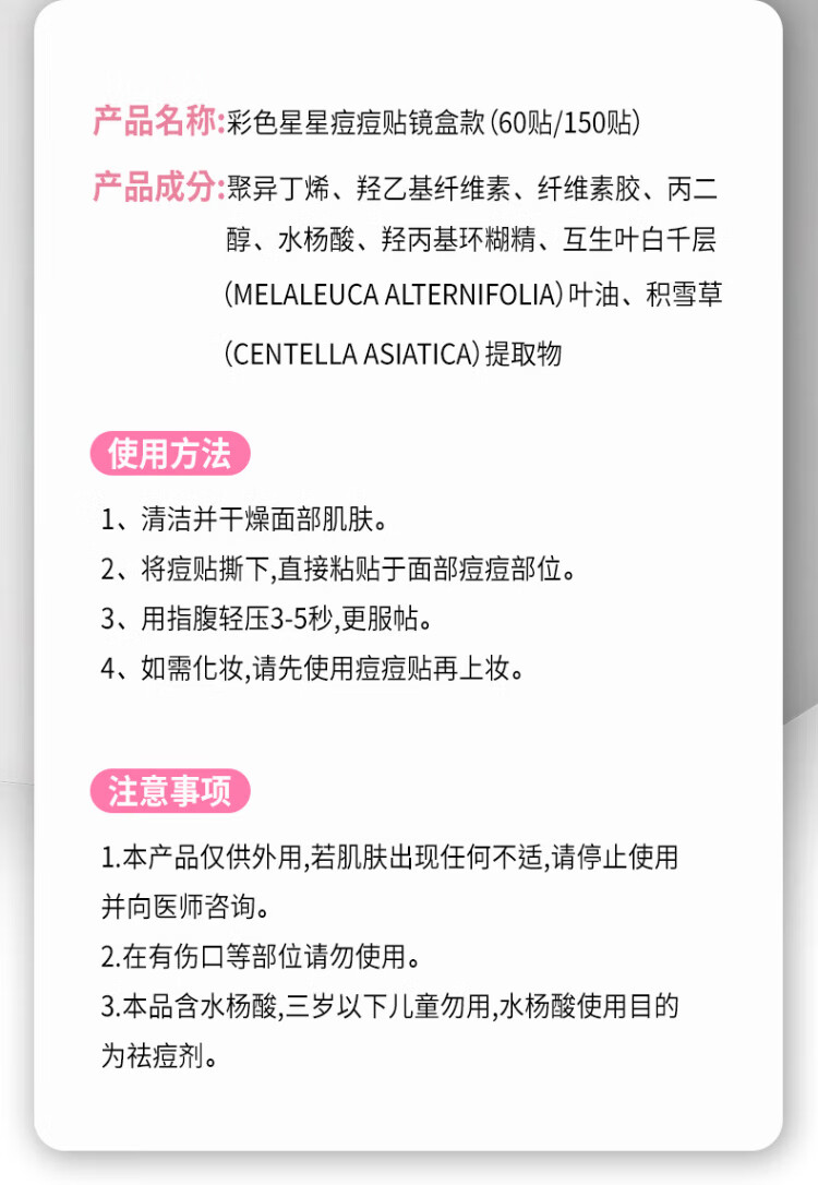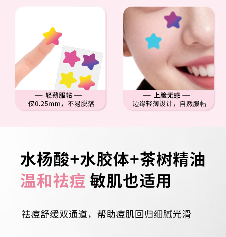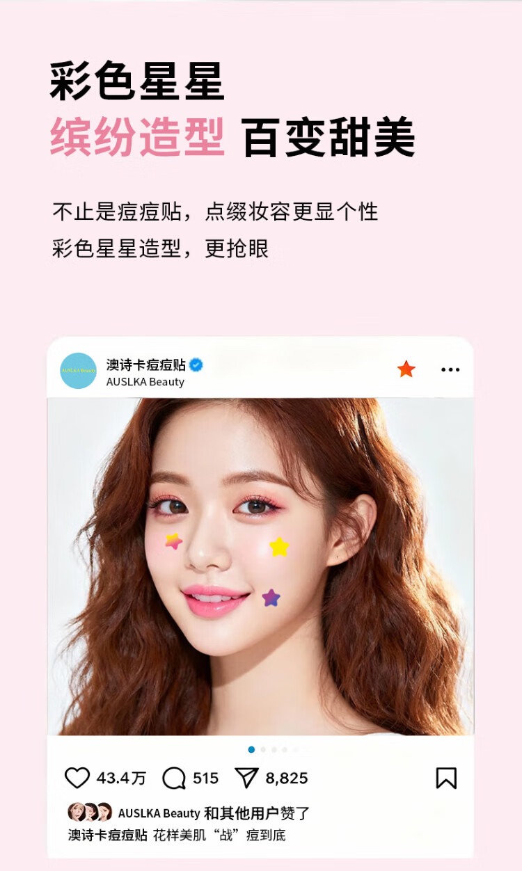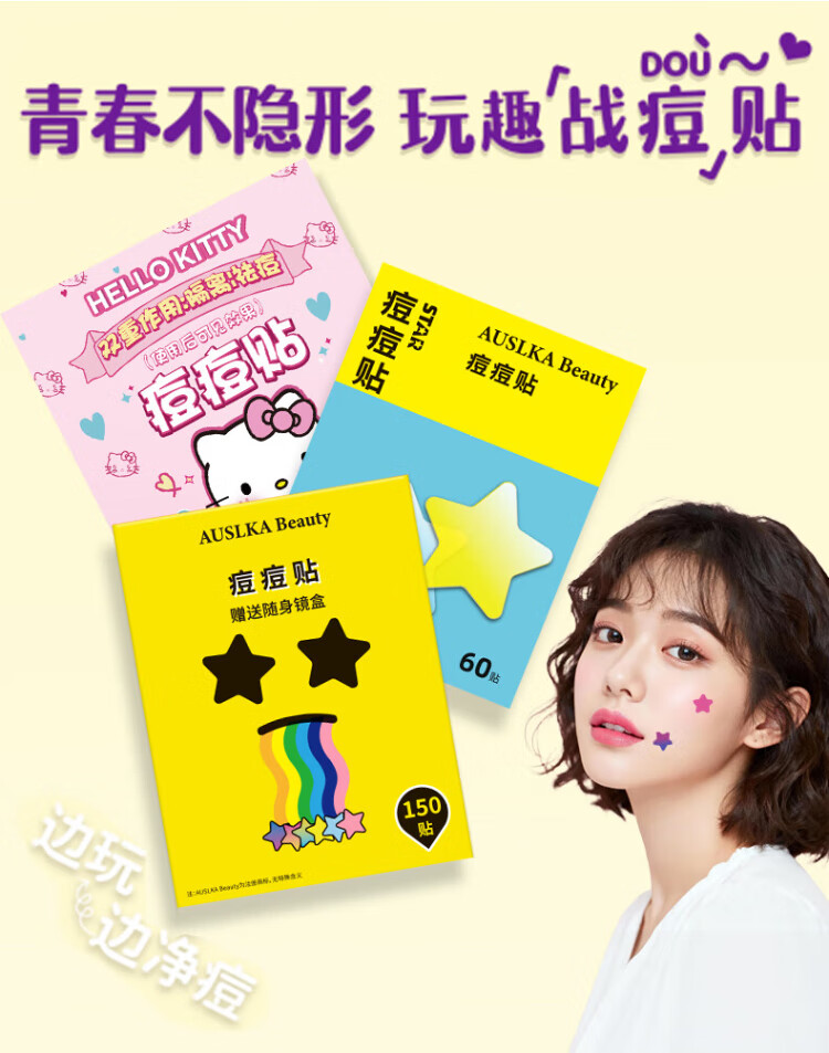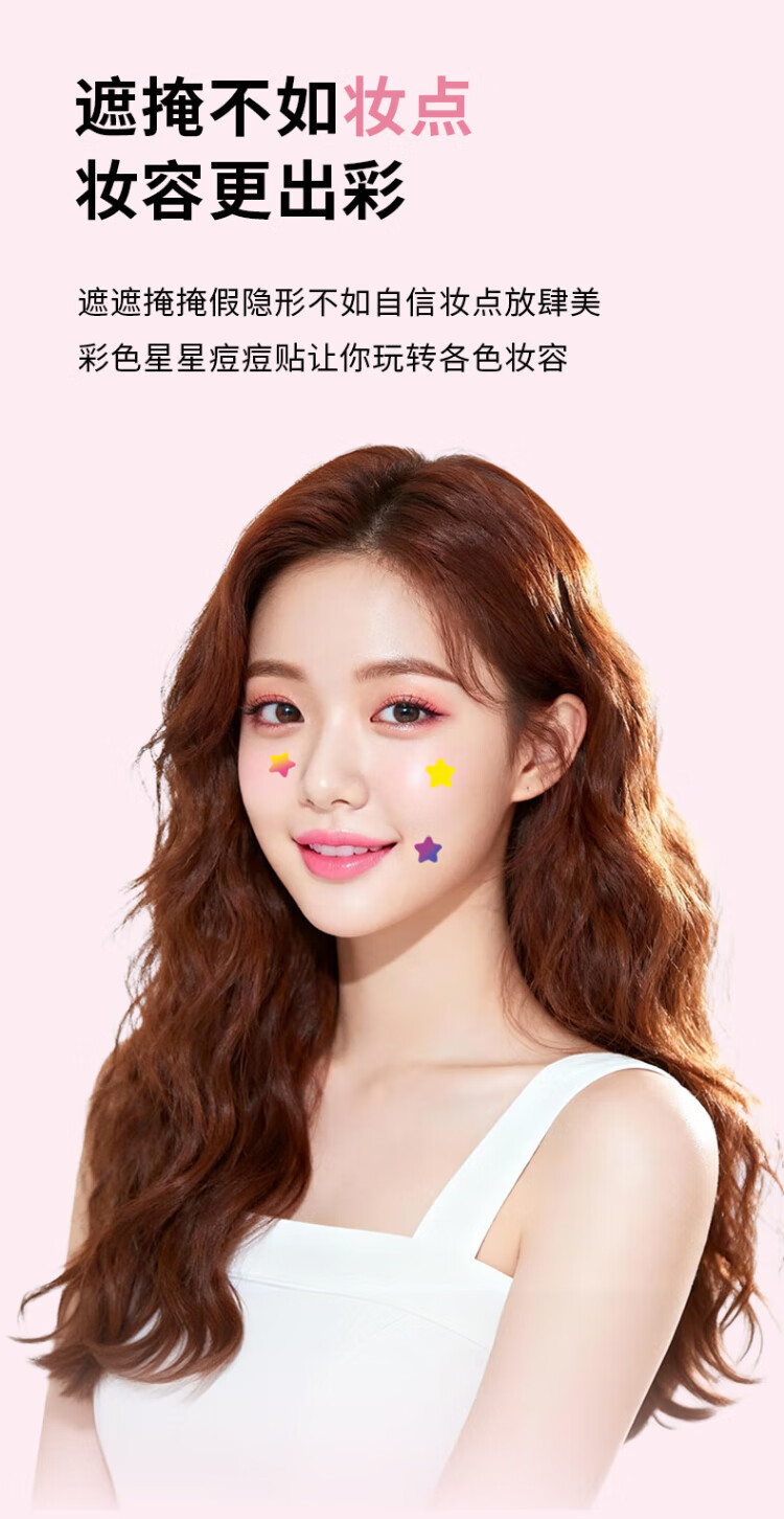 AUSLKA Beauty Colorful Star Acne Patch Comes with Mirror Case Lightweight Breathable Concealer Hydrocolloid Skin Friendly Anti-Acne Student Party