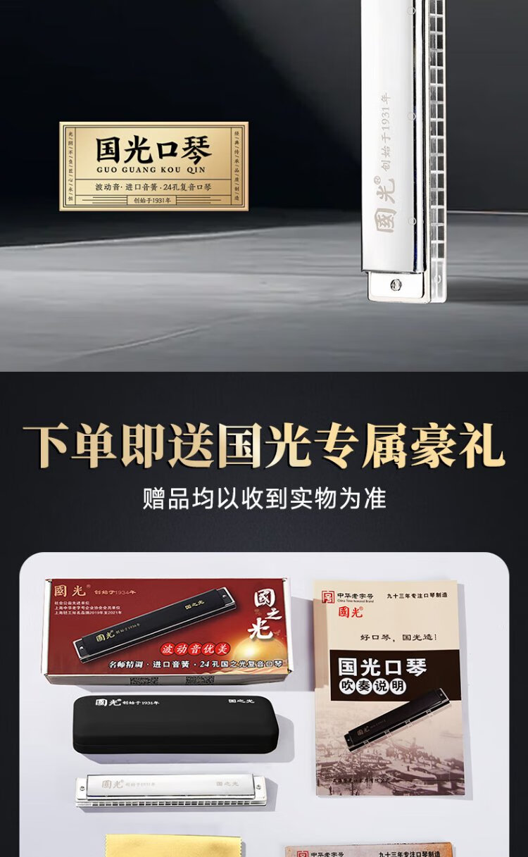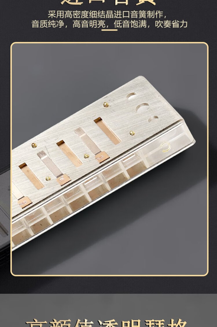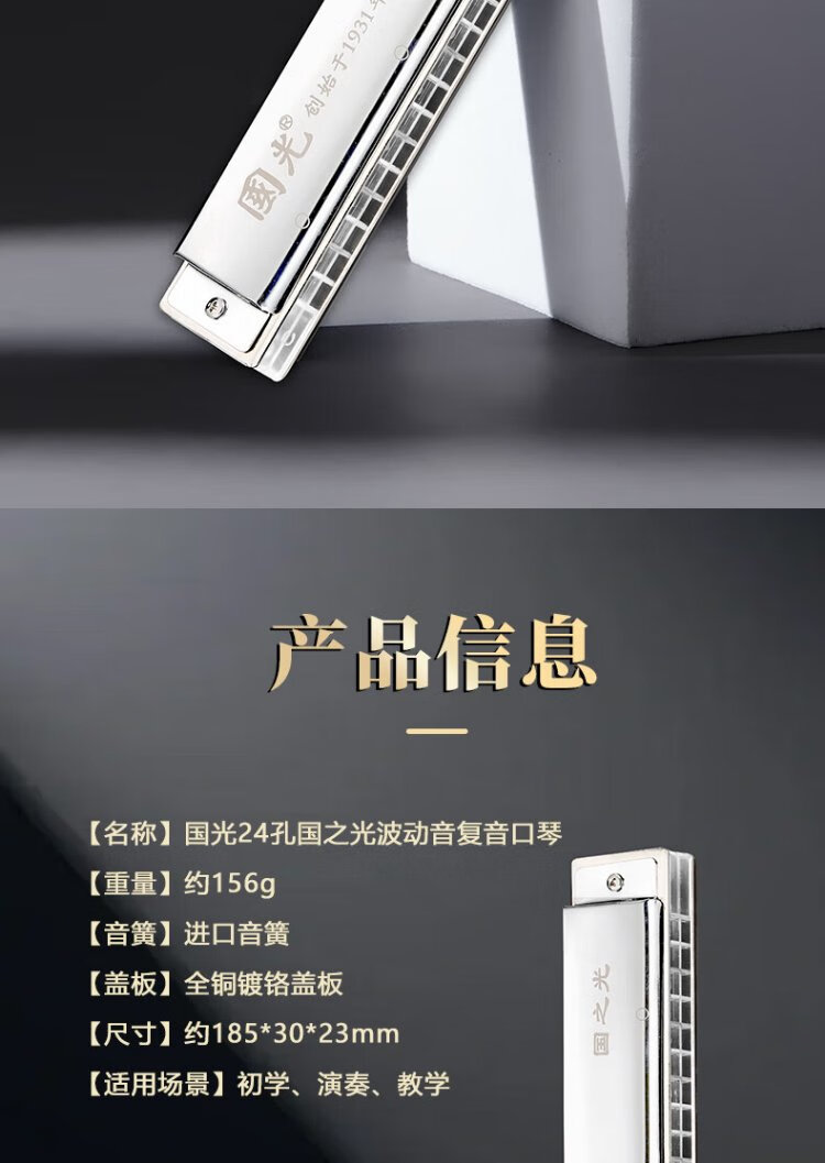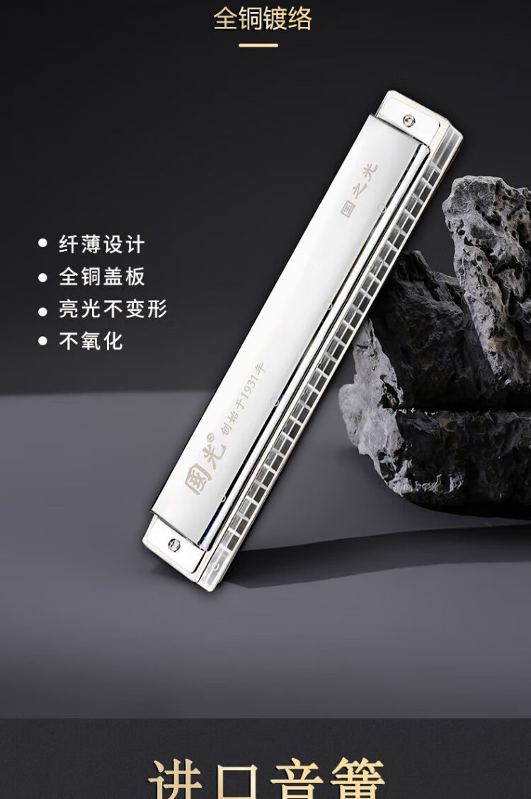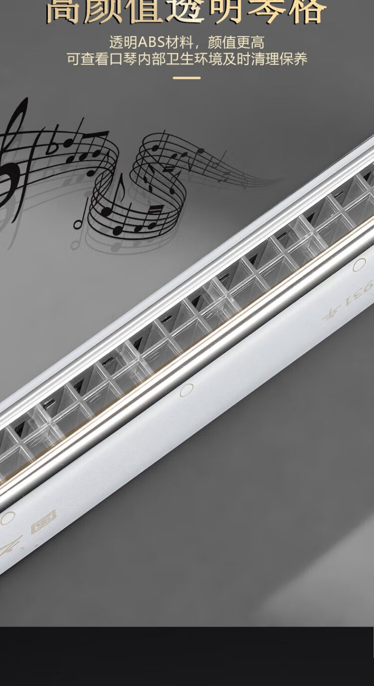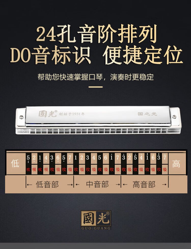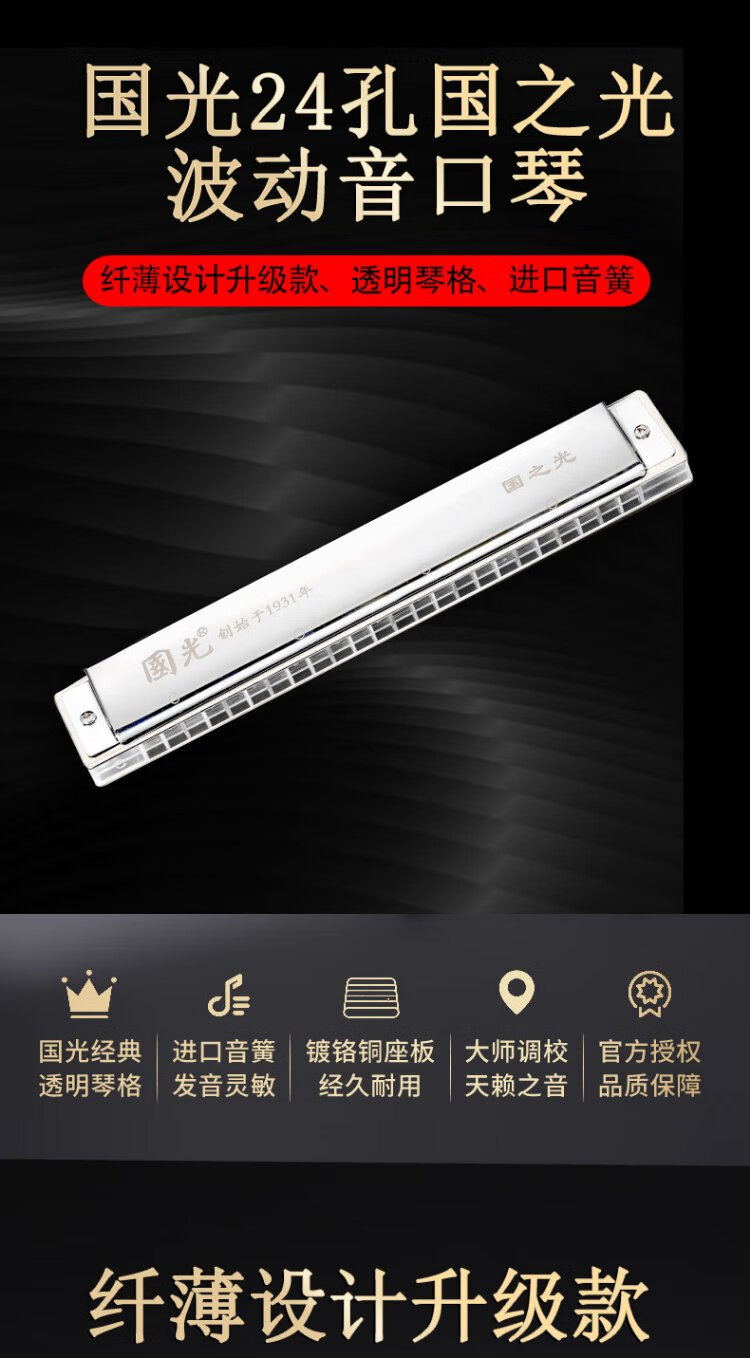 Guoguang 24-hole Guozhiguang wave harmonica (silver, transparent grid, with teaching materials, glasses case)