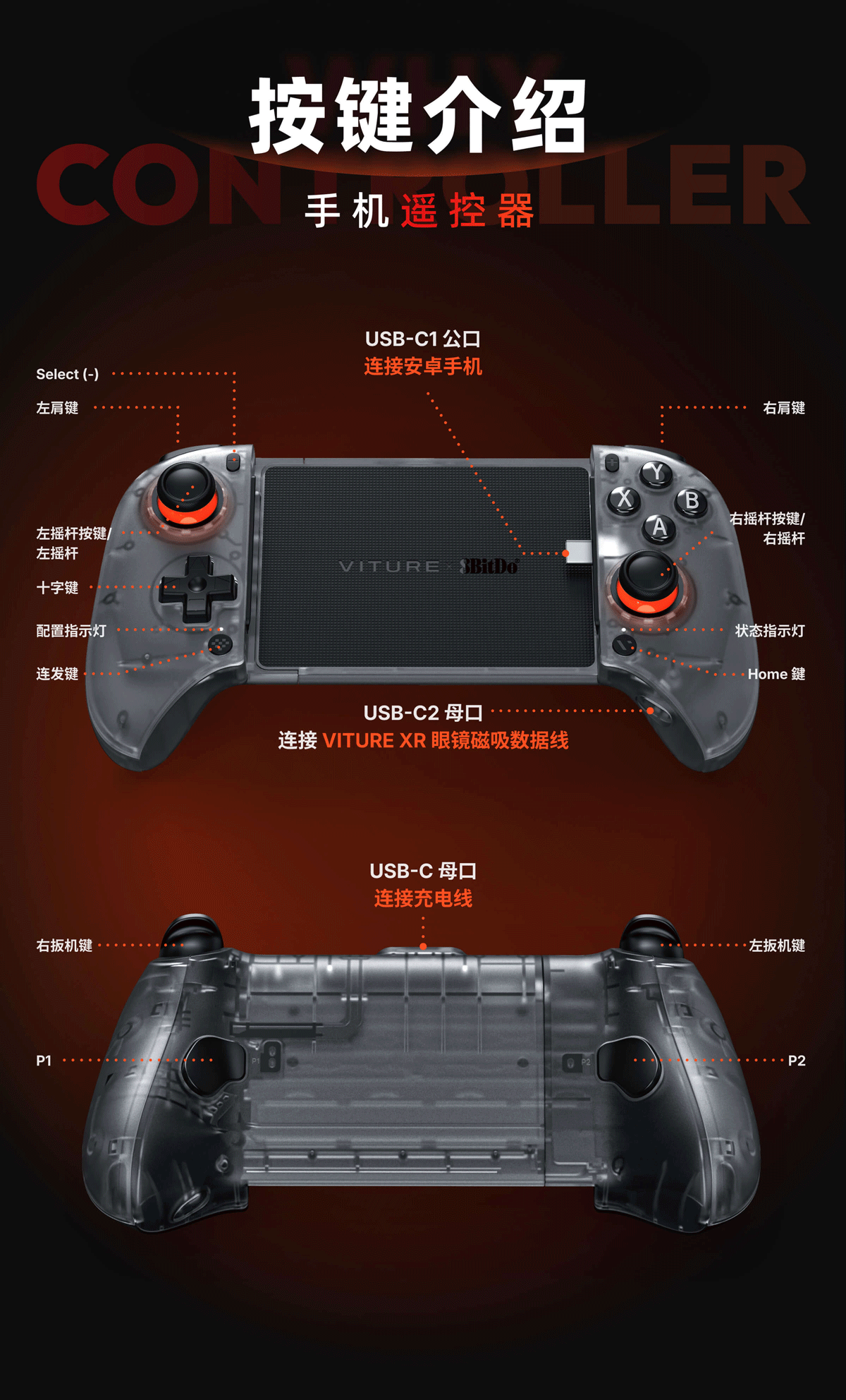 VITURE x 8BitDo AR Glasses Exclusive Mobile Game Controller Lie Win Mobile Game Pull Up Game Controller Streaming Original God Ming Chao Jue Zone Sporadic Dome Railway Adapted to Android