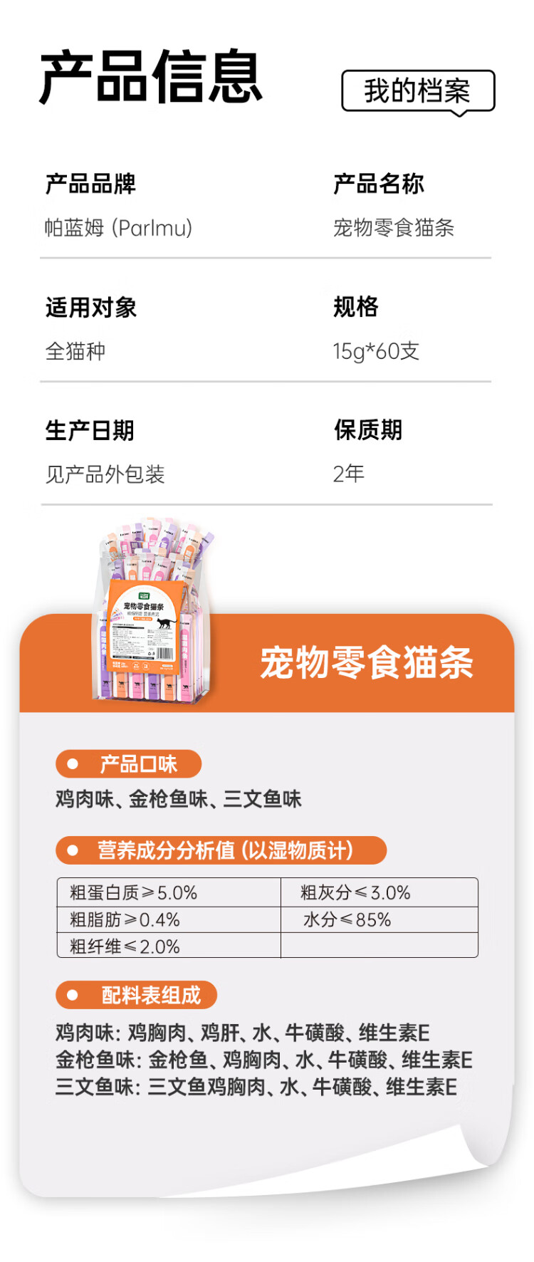 Parlmu cat snacks 120 pieces * 15g adult cats and kittens fresh meat cat wet food canned mix