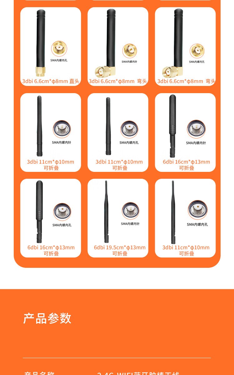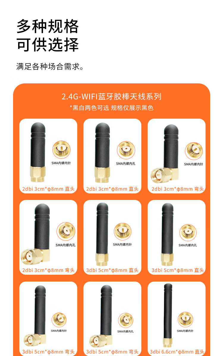 Rentian 2.4G-WIFI Bluetooth external glue stick omnidirectional antenna 3cm* 8mm gain 2DBI SMA inner hole black elbow 1 piece RT-TX006