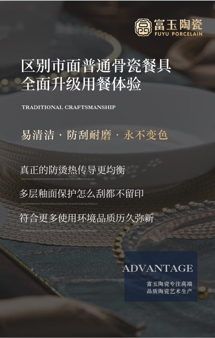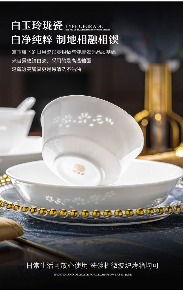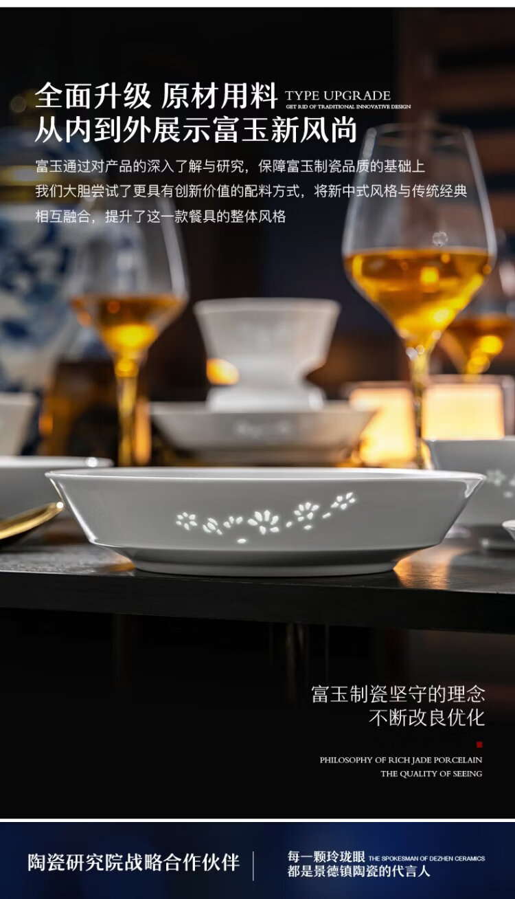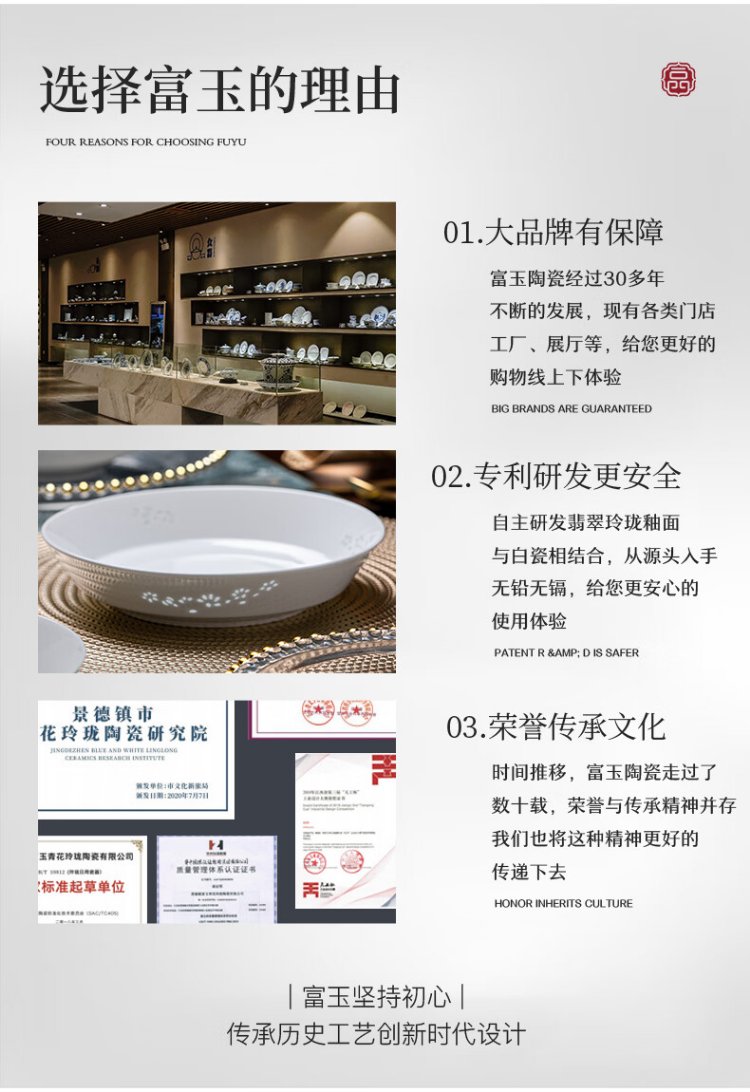 Fuyu ceramics Jingdezhen tableware pure white Chinese exquisite plate home moving gift Magnolia soup plate 6 pieces