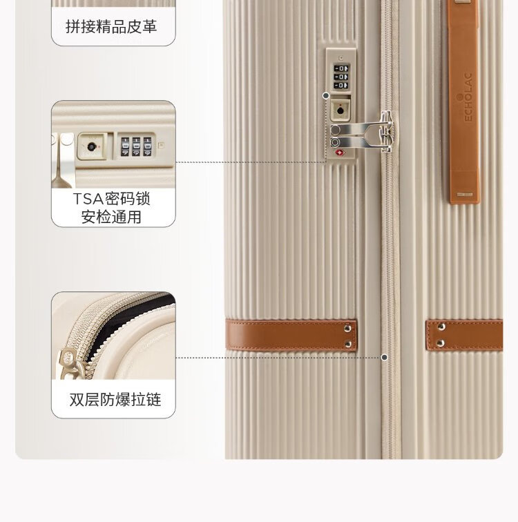 Echolac Large Capacity TRUNK Suitcase Universal Wheel Trolley Case Dynasty Retro Case PC237K Milk Tea Gray 26 Inch