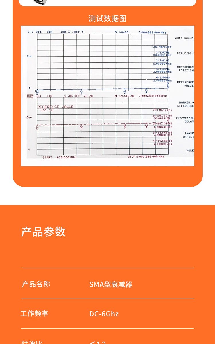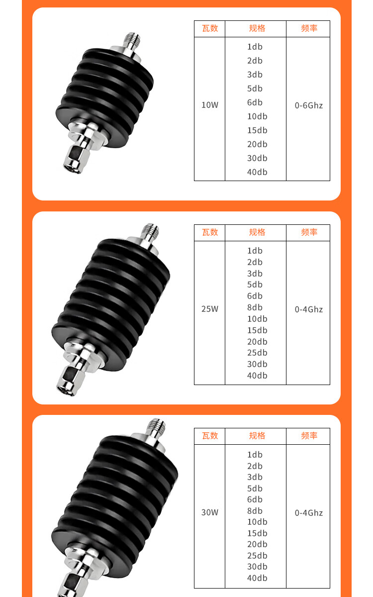 Menitian SMA-JK type RF attenuator male to female coaxial attenuator fixed power 0-6GHz/10W/20db 1 piece SMA-10W/620