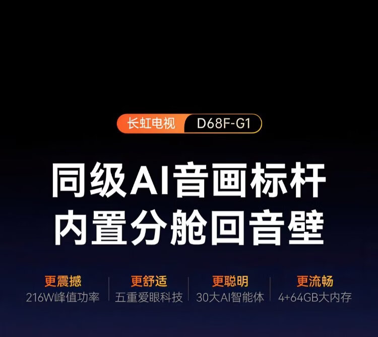 Changhong TV 65D68F-G1 65-inch 144Hz high refresh rate 4GB+64GB large memory 4K ultra-high definition smart LCD flat-panel TV state subsidy trade-in