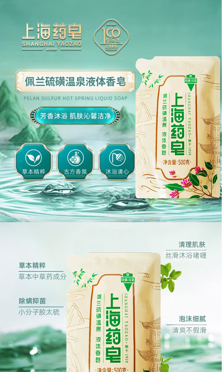 Shanghai Medicated Soap Sulfur Perrin Liquid Soap 500g Refill Pack Anti-mite and Antibacterial Herbal Essence Thick Foam