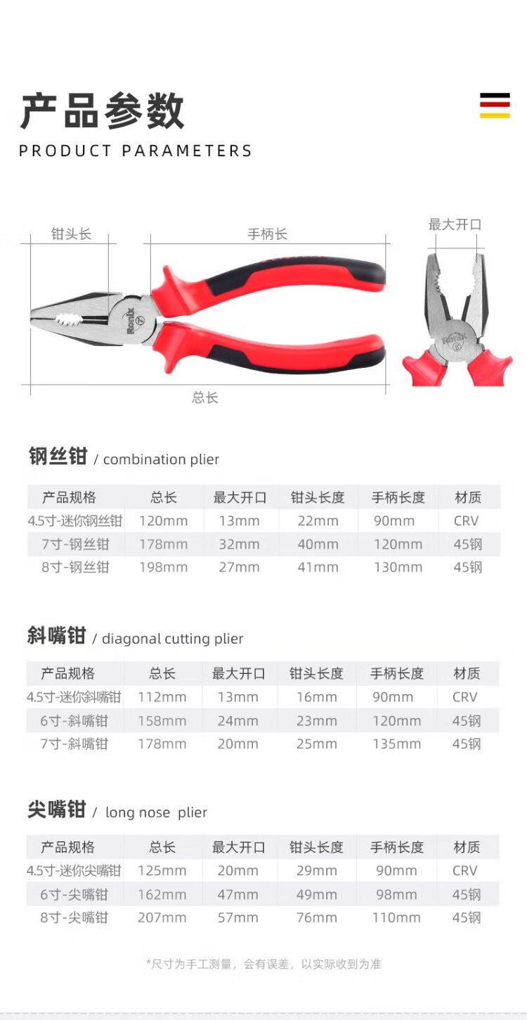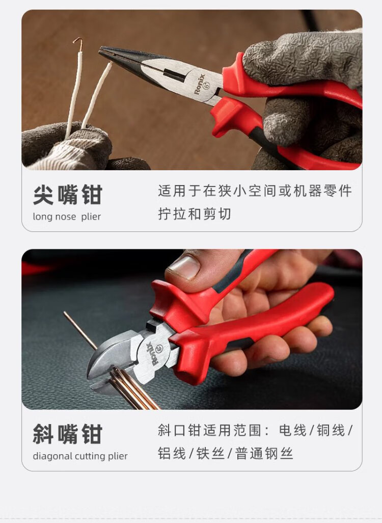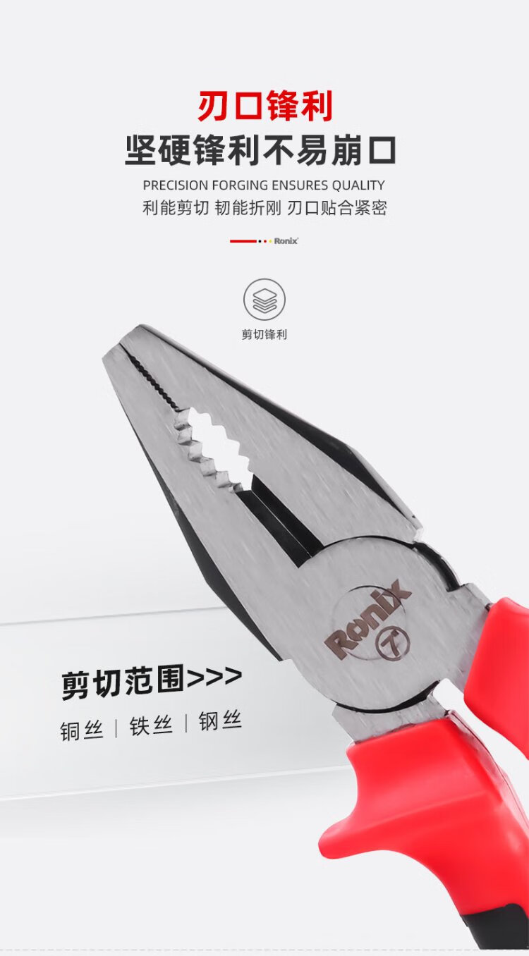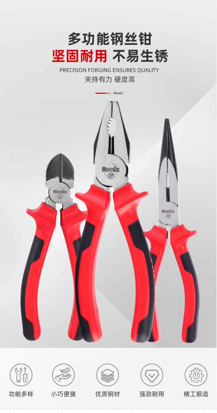 Ronix vise, wire pliers, multi-functional household tiger tools, electrician's special beveled tip hand pliers