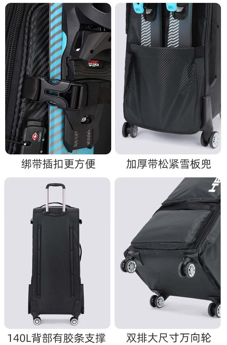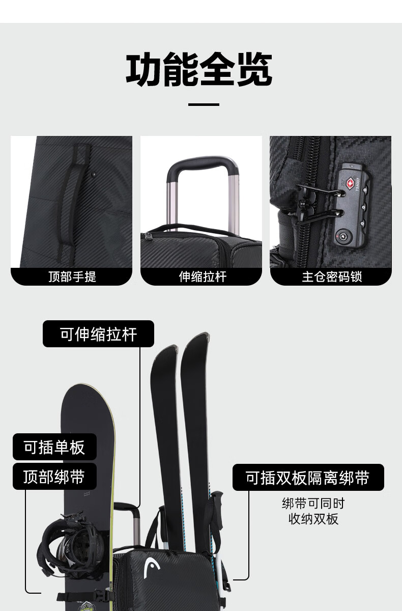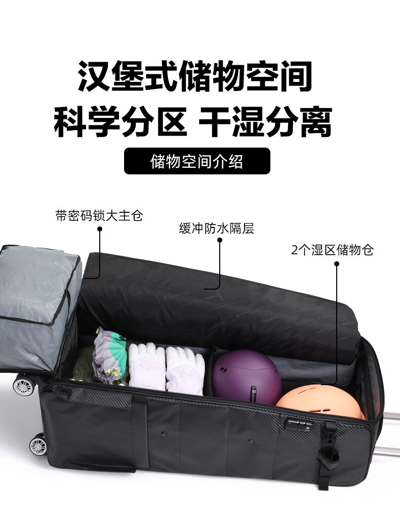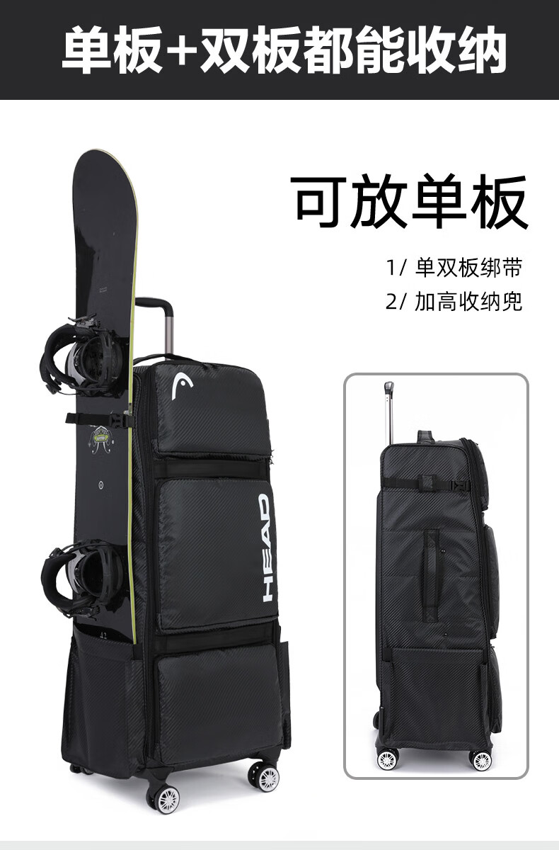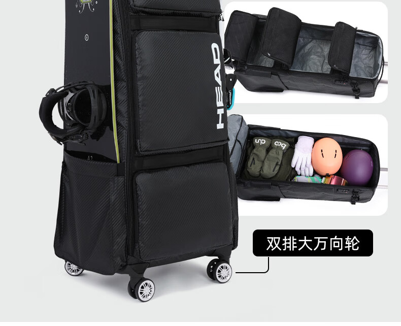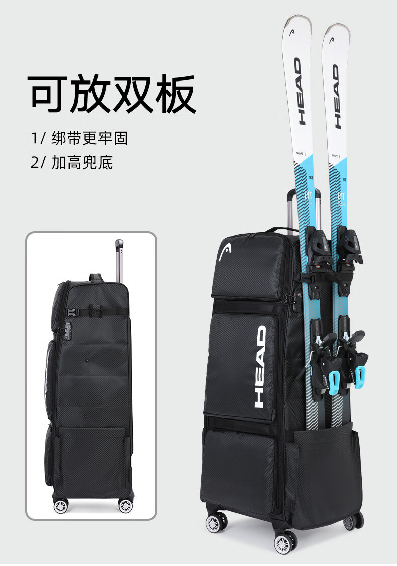 HEAD suitcase, snowboard bag, wheeled ski box, single and double board ski bag, ski equipment storage box, large capacity, can be checked in