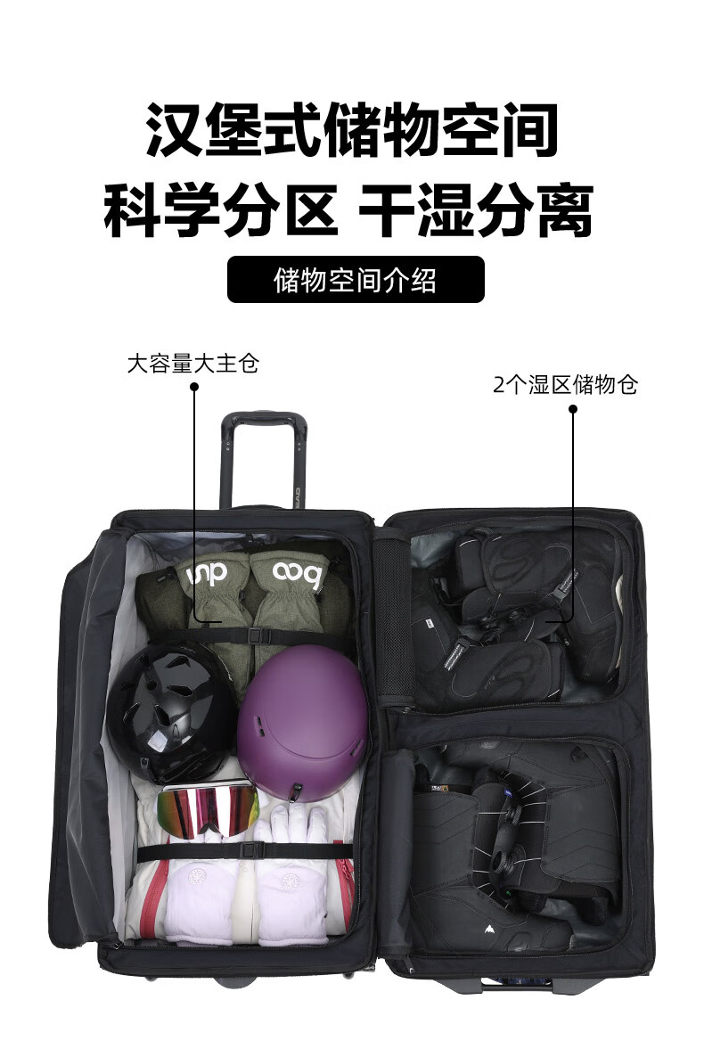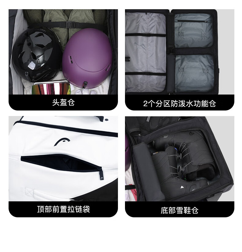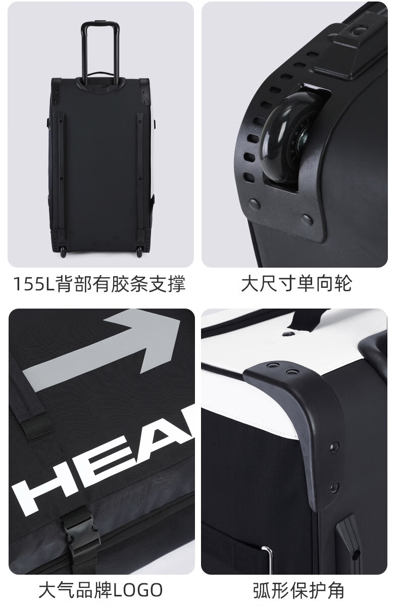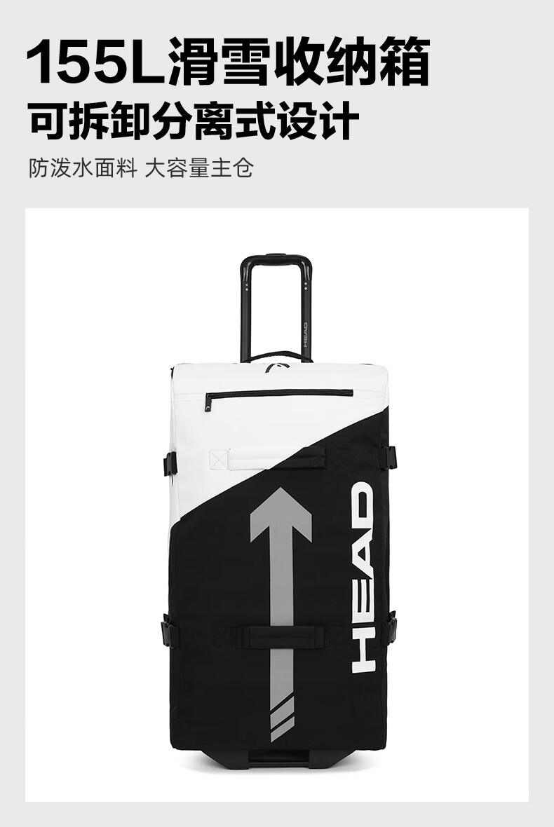 HEAD suitcase, ski gear, snowshoe storage box with wheels, large capacity, water-repellent, wear-resistant, single and double board ski bag 150L