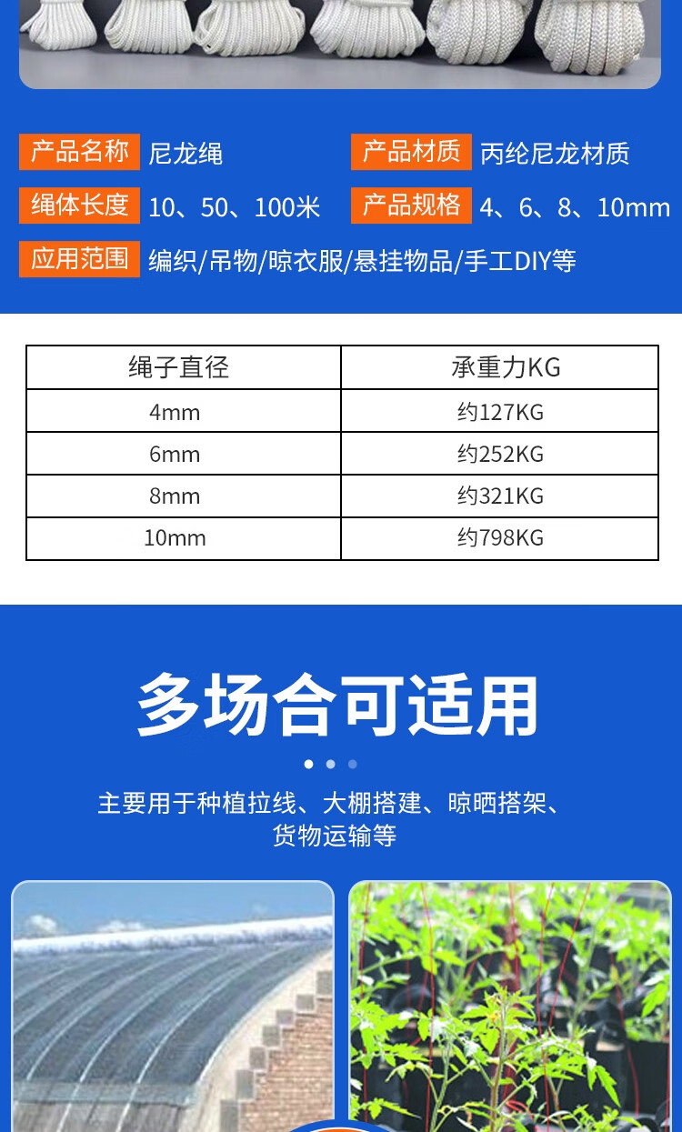 Deqi nylon rope packing rope packing belt outdoor safety binding rope salvage rope 4mm*100 meters