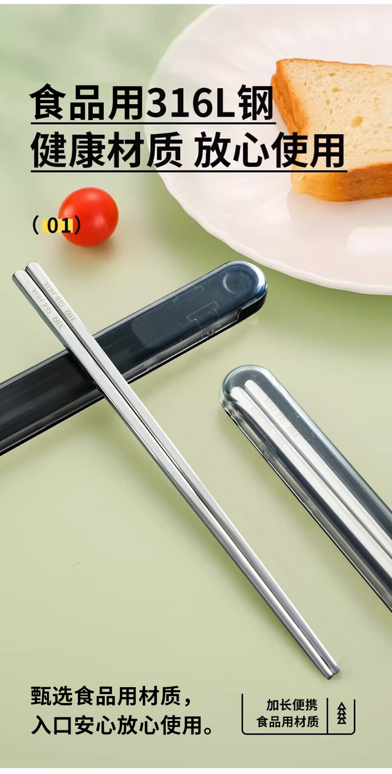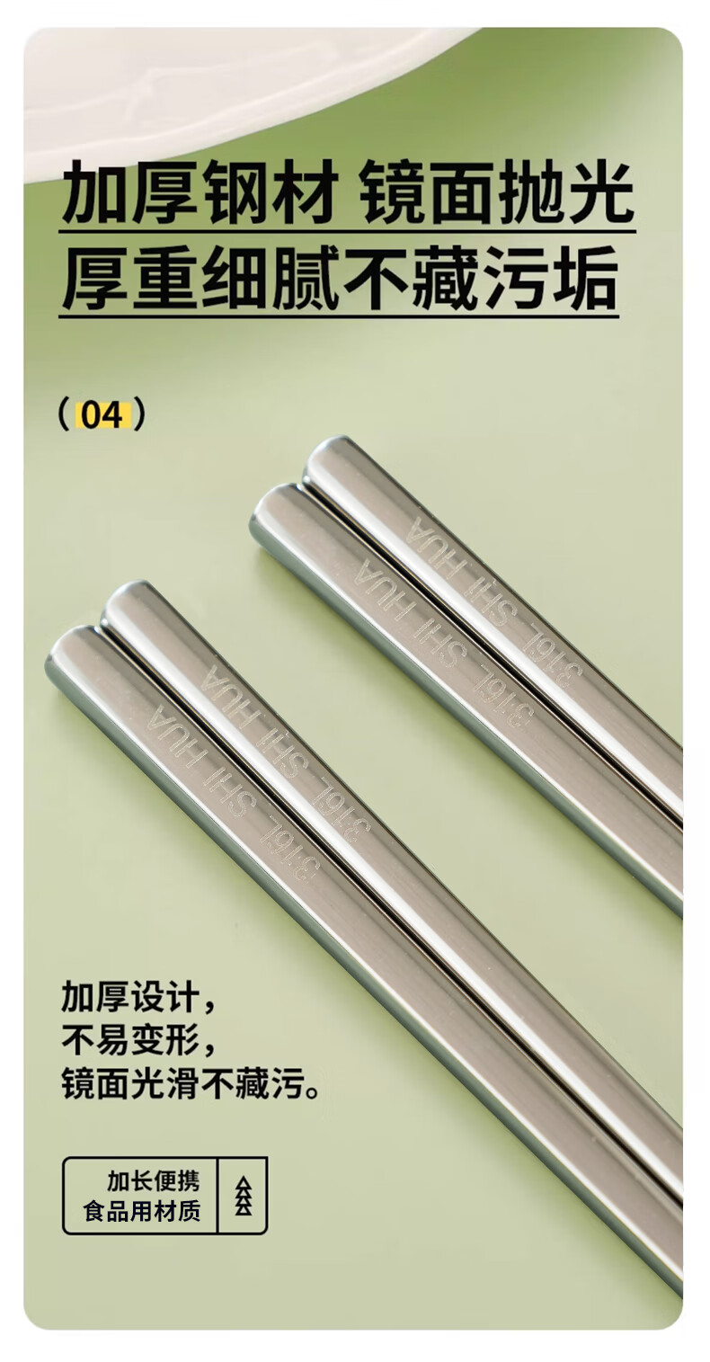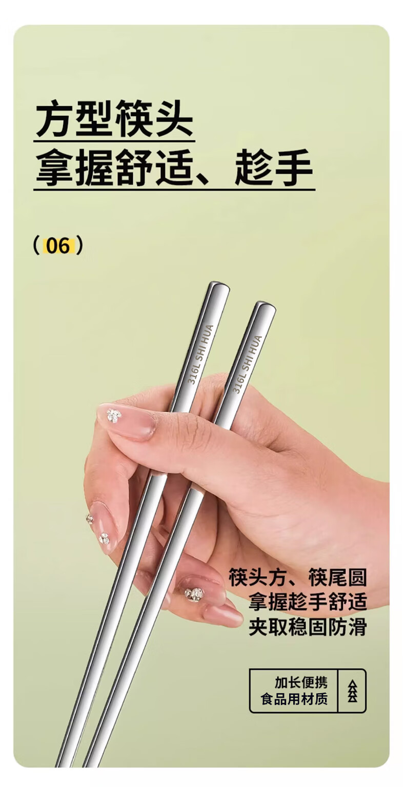 Shihua 316L stainless steel chopsticks, portable chopsticks, non-slip, non-mouldy square chopsticks, one pair for each person, special chopsticks