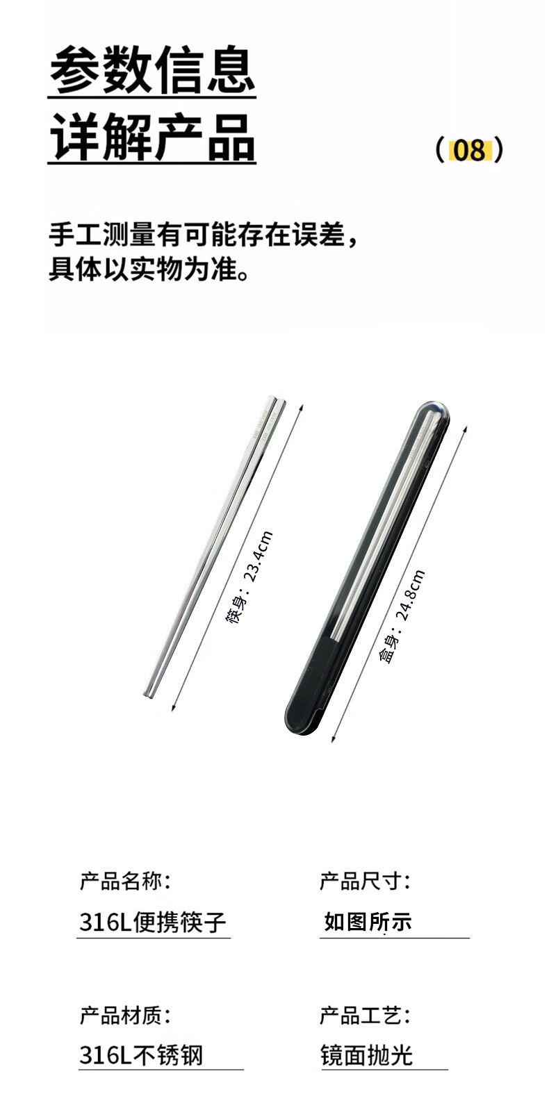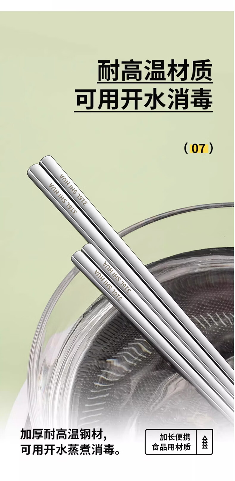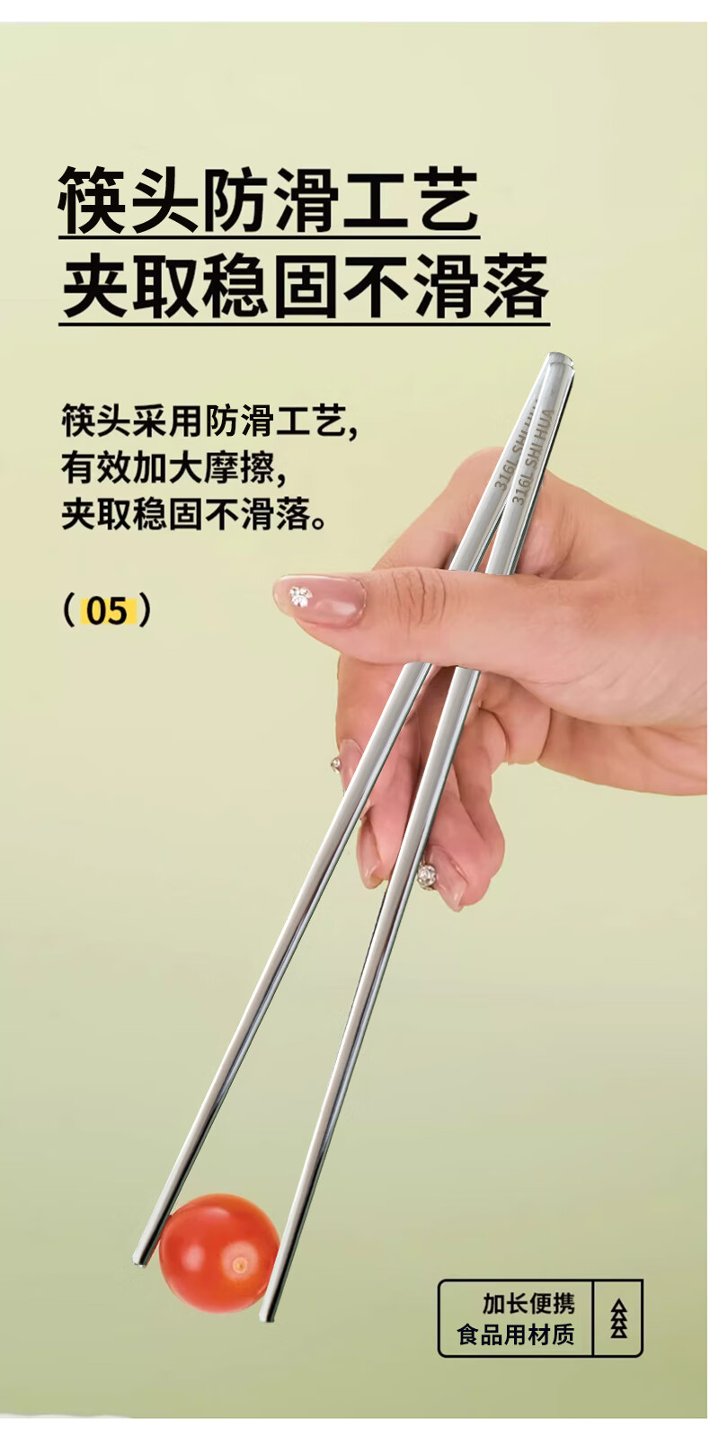 Shihua 316L stainless steel chopsticks, portable chopsticks, non-slip, non-mouldy square chopsticks, one pair for each person, special chopsticks