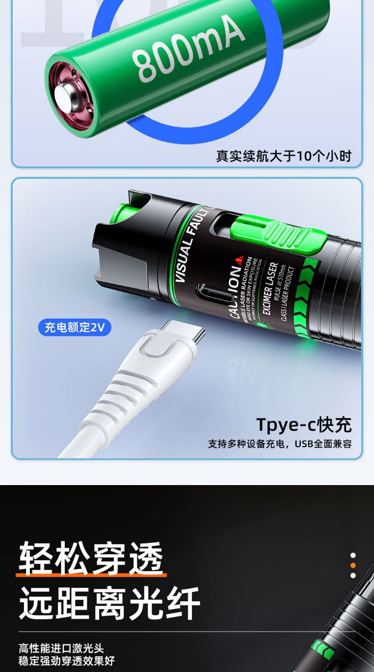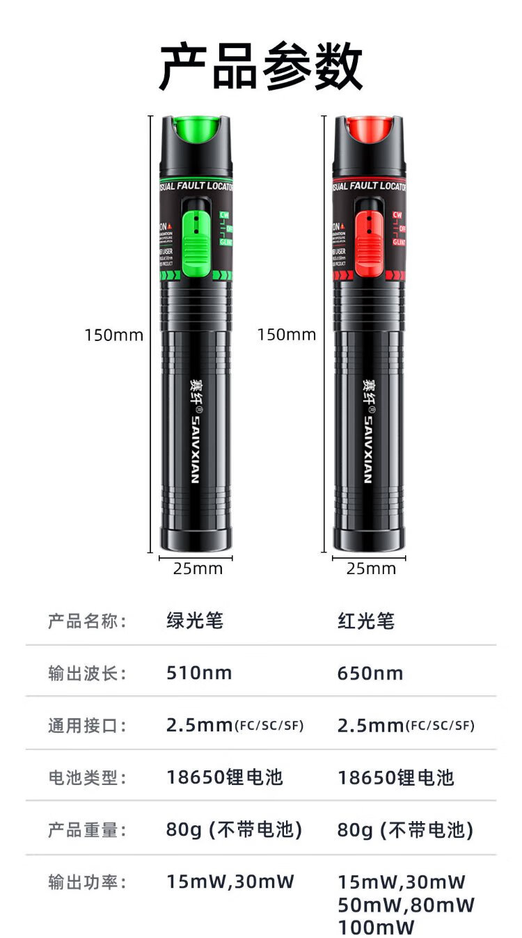 Sai fiber fiber green light pen rechargeable green light source tester fiber optic light pen lighting pen breakpoint detector 15mW