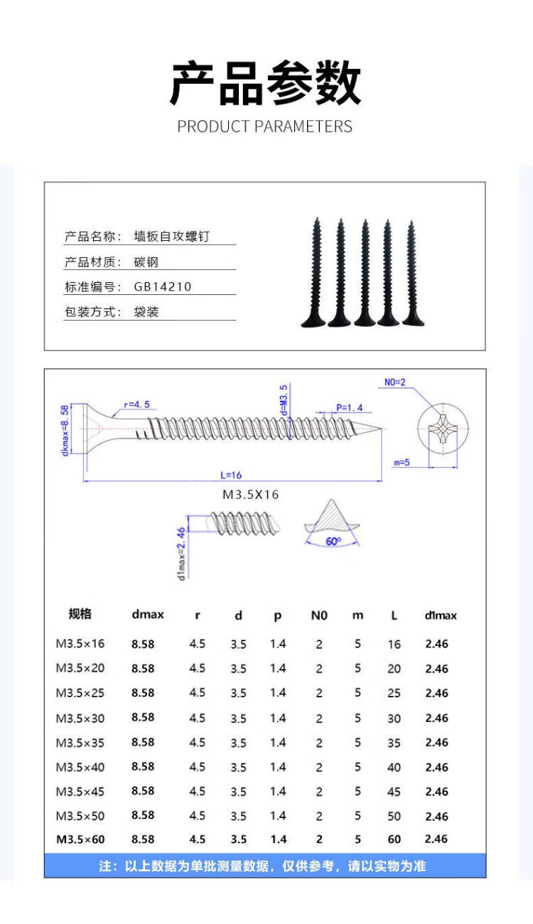 Jestine self-tapping screws high-strength dry wall nails wood screws wallboard nails keel self-tapping cross flat head self-tapping screws high-strength M3.5*16 (100 pieces)