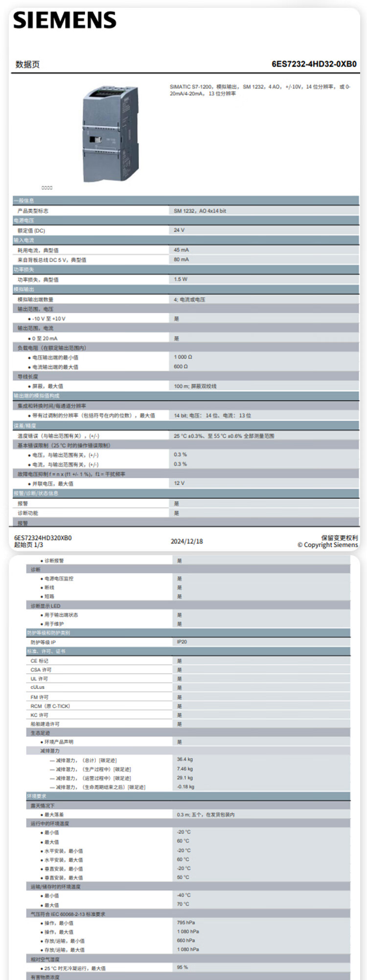 Siemens 6ES7232-4HD32-0XB0 PLC module controller SIMATIC S7-1200, analog output, SM 1232