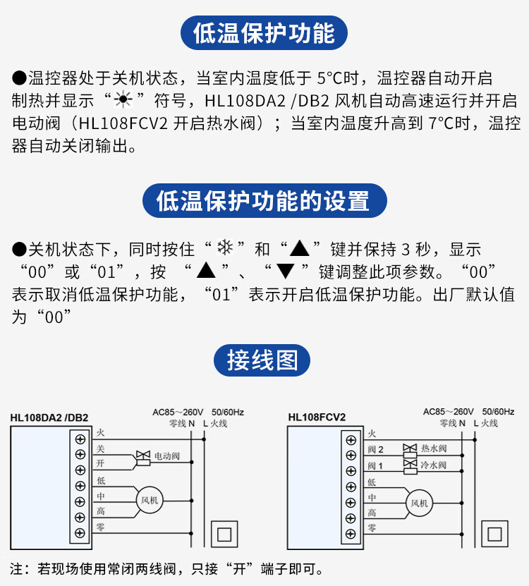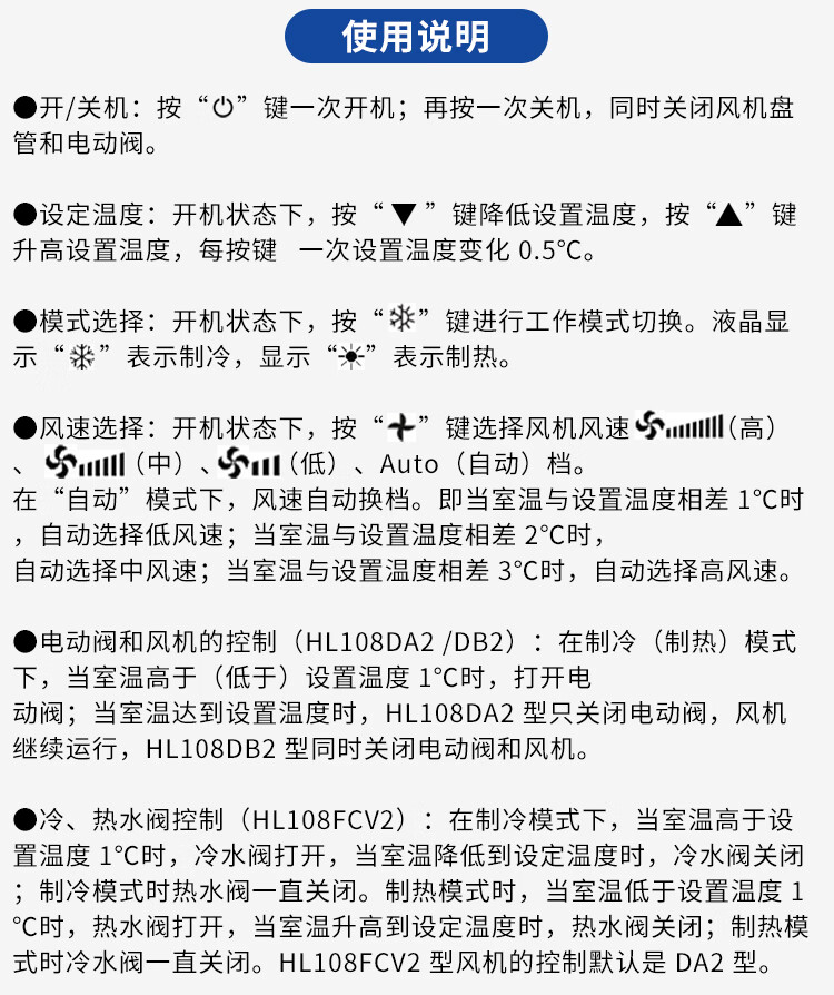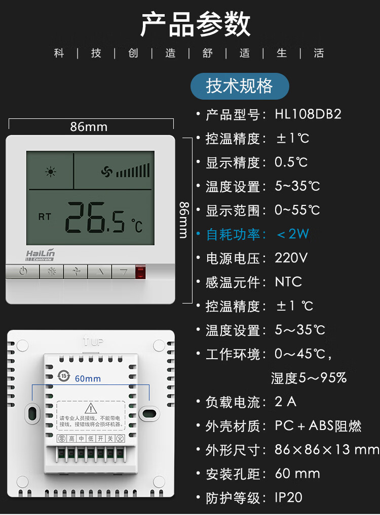 HAILIN thermostat central air conditioning controller temperature control switch panel two-pipe Hailin HL108DB2