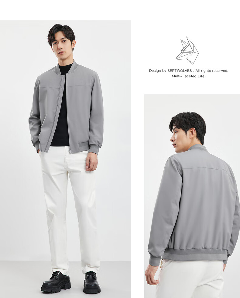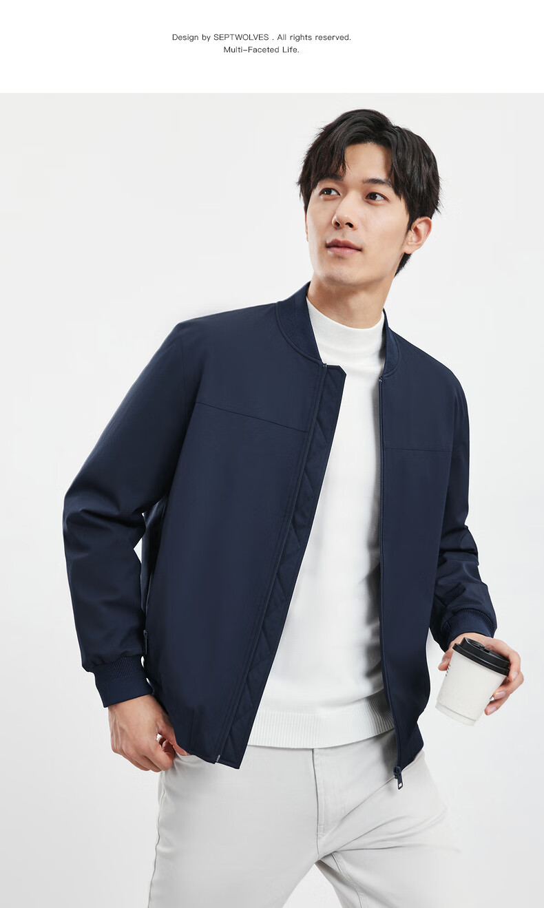 Septwolves Jacket Men's Jacket Autumn and Winter Fashion Casual Baseball Lavalier Thin Cotton Four-Way Stretch Graphene Warm Men's Clothing